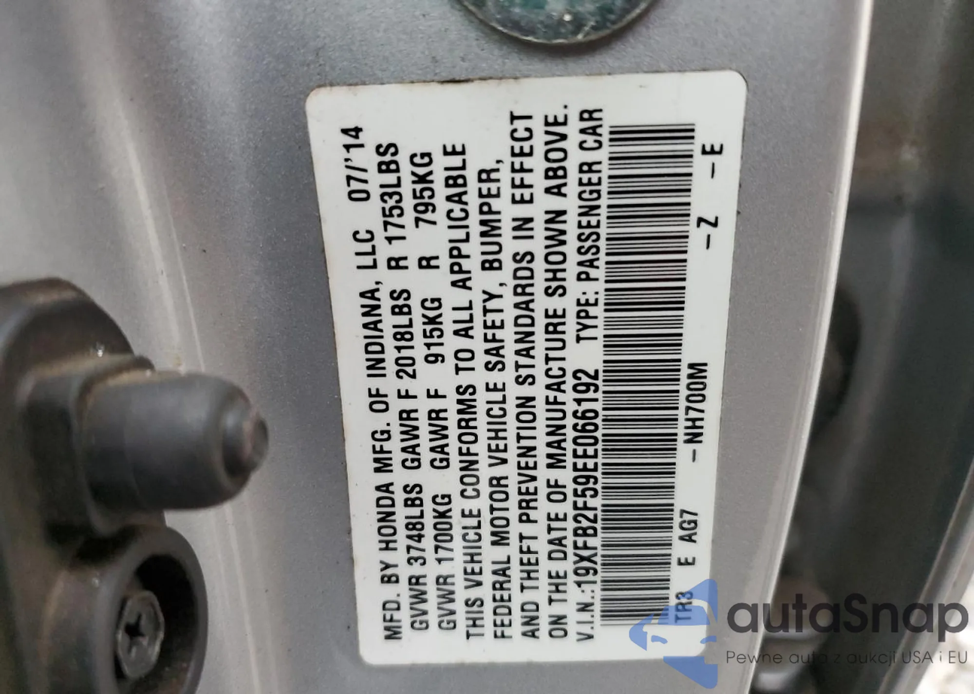 • VIN 19XFB2F59EE066192