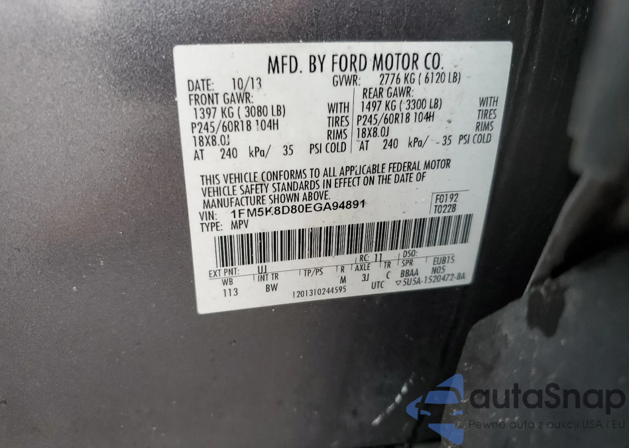 LOT: 59973815 VIN: 1FM5K8D80EGA94891