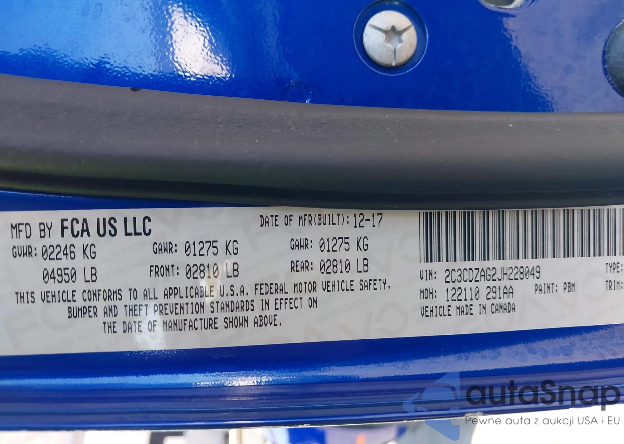 • VIN 2C3CDZAG2JH228049