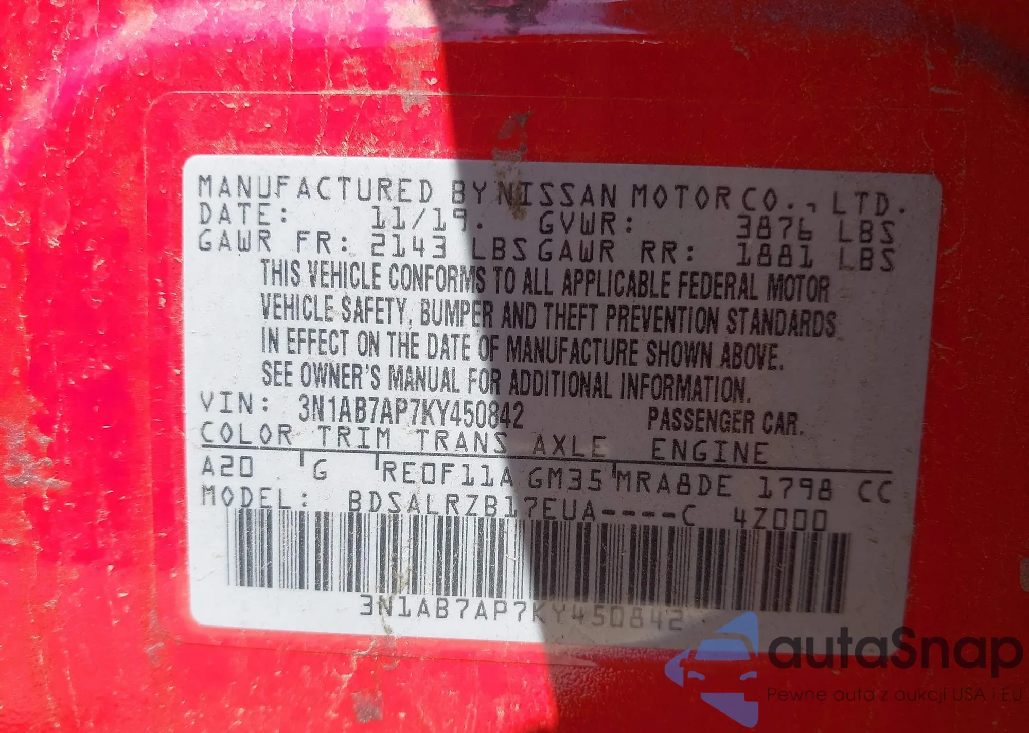 • VIN 3N1AB7AP7KY450842