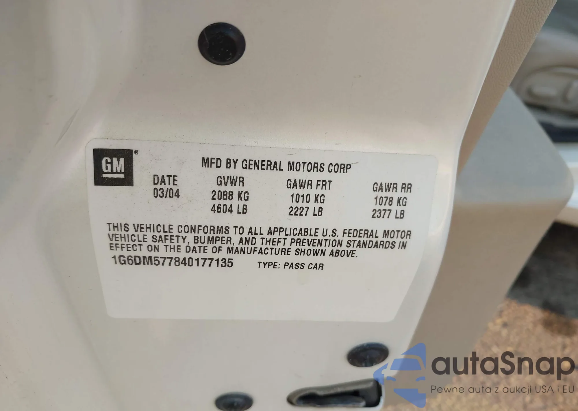 • VIN 1G4CW52KXV4653227