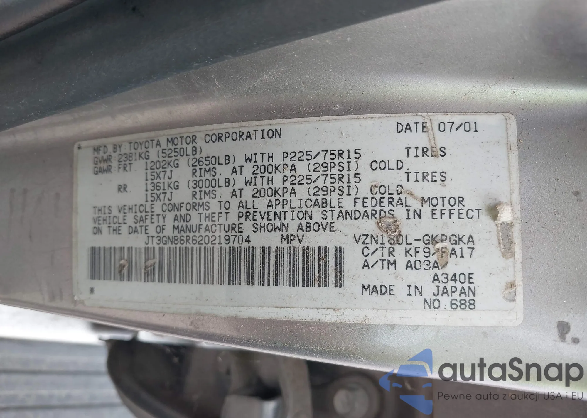 LOT: 43112335 VIN: JT3GN86R620219704