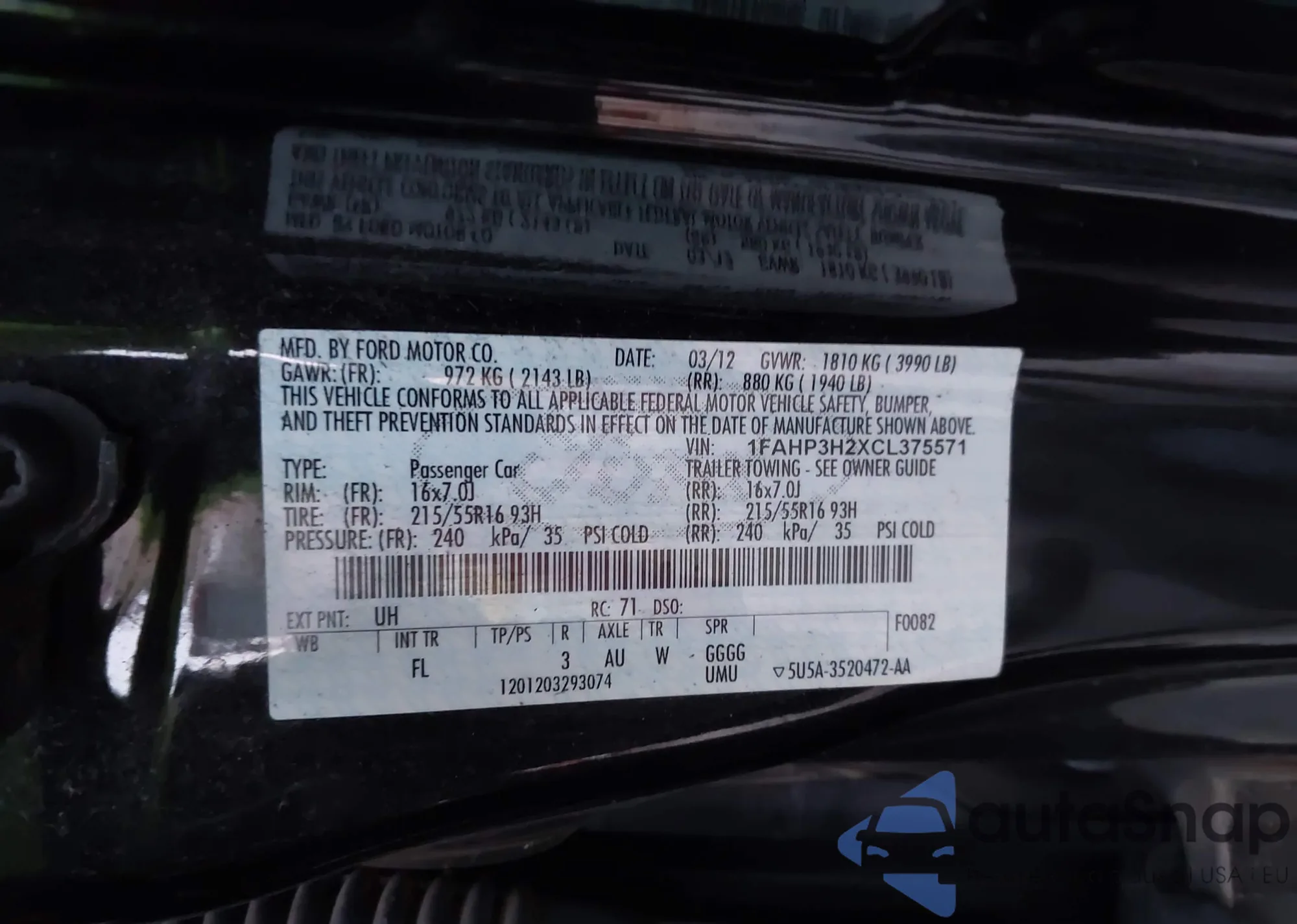 • VIN 1FAHP3H2XCL375571