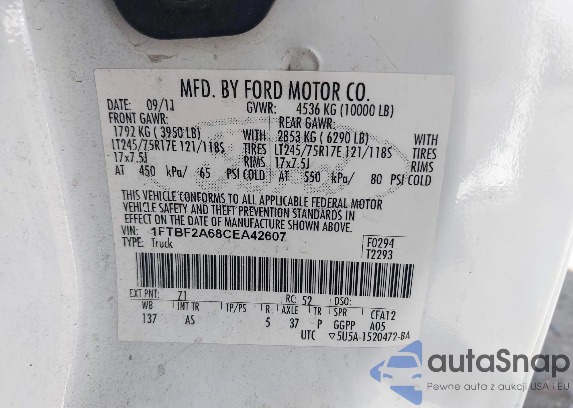 • VIN 1FTBF2A68CEA42607