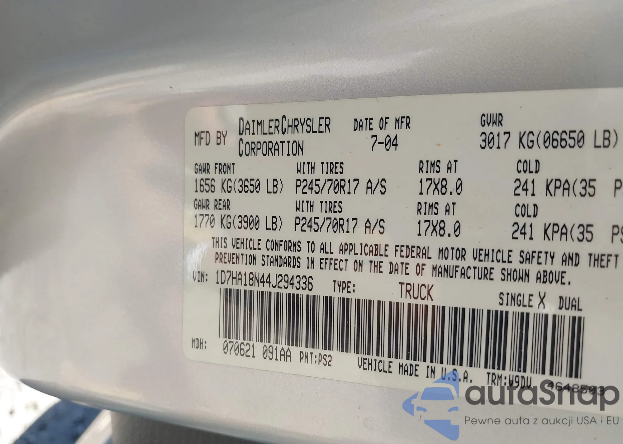 LOT: 43116593 VIN: 1D7HA18N44J294336