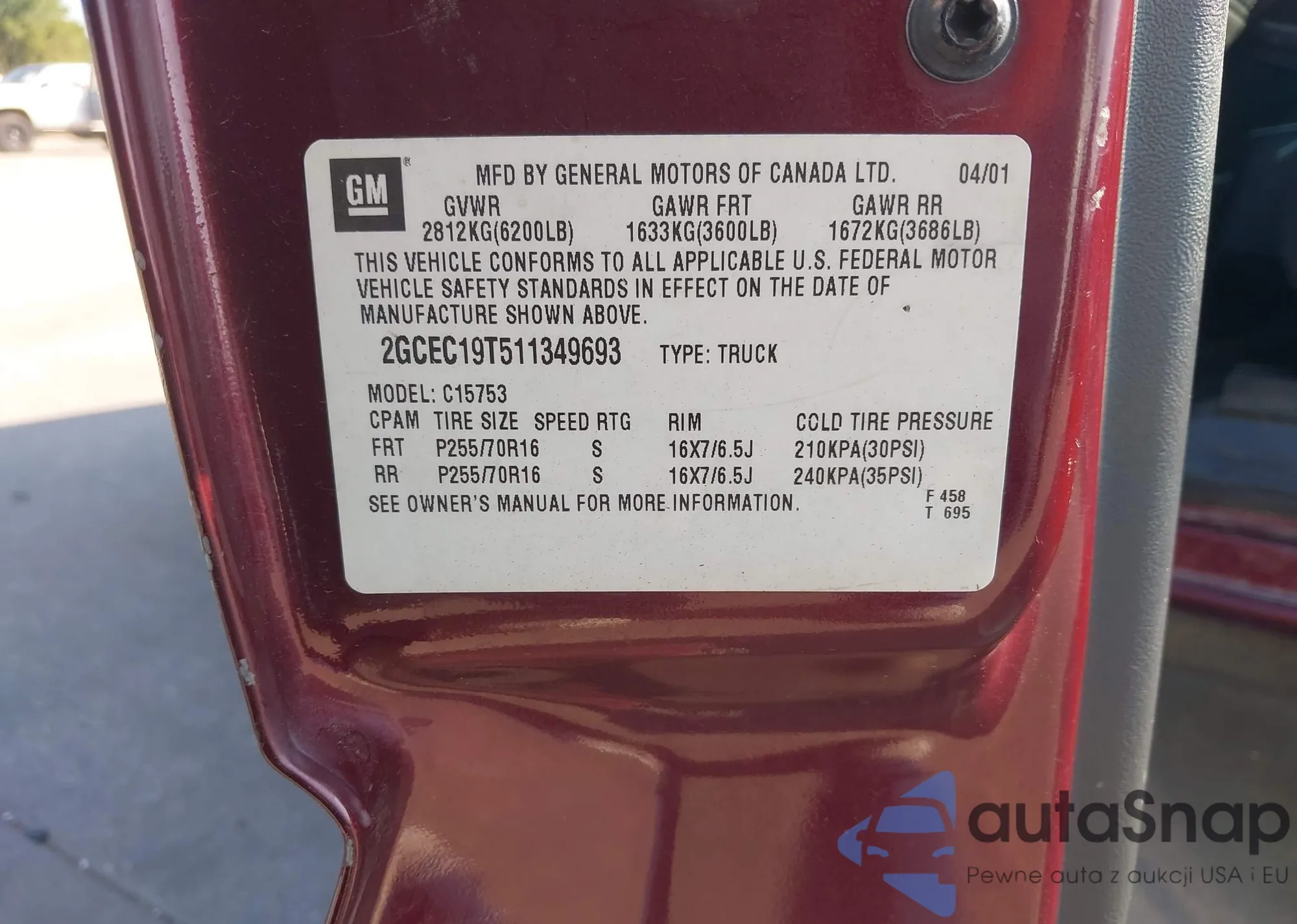 • VIN 2GCEC19T511349693