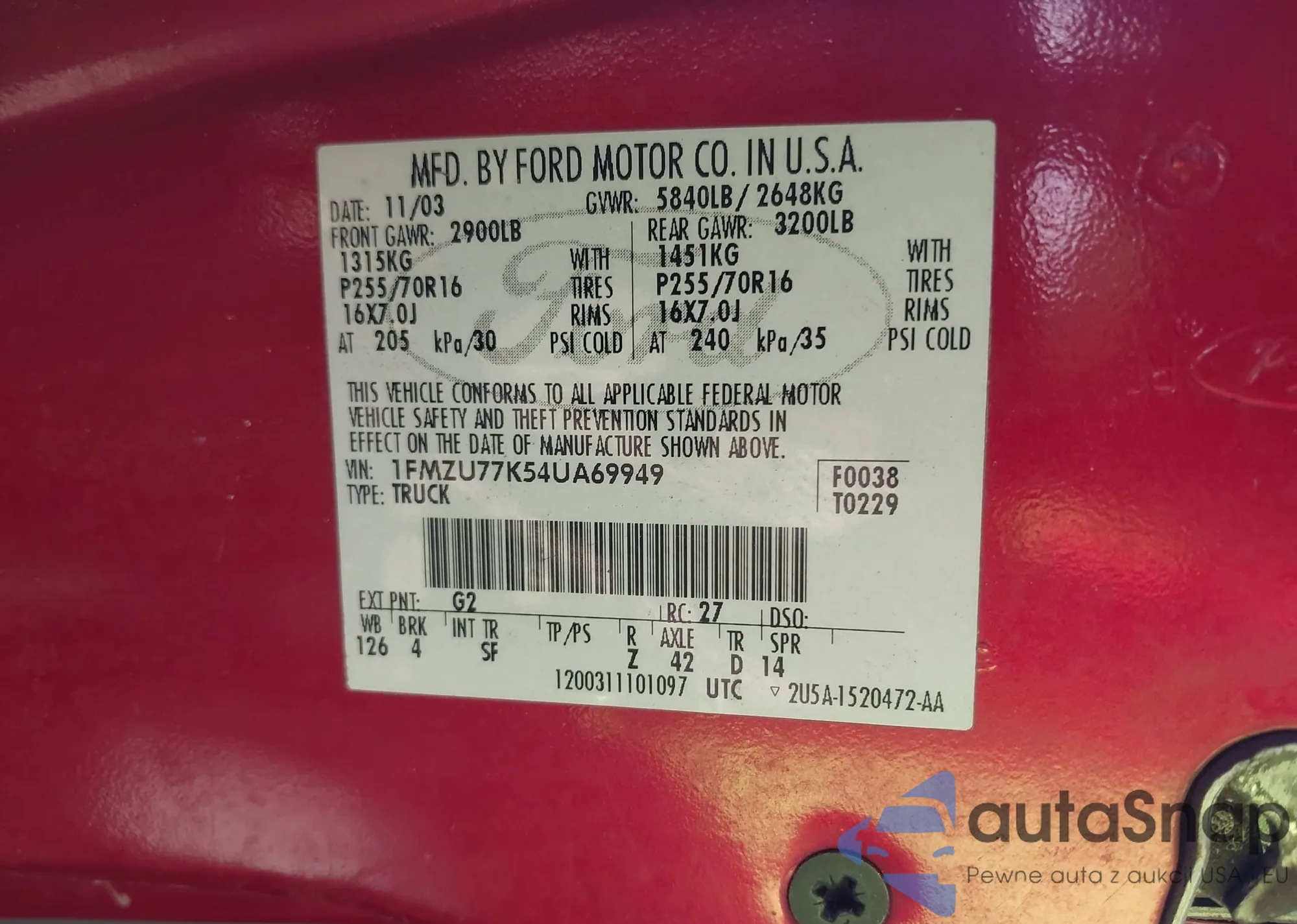 • VIN 1FMZU77K54UA69949