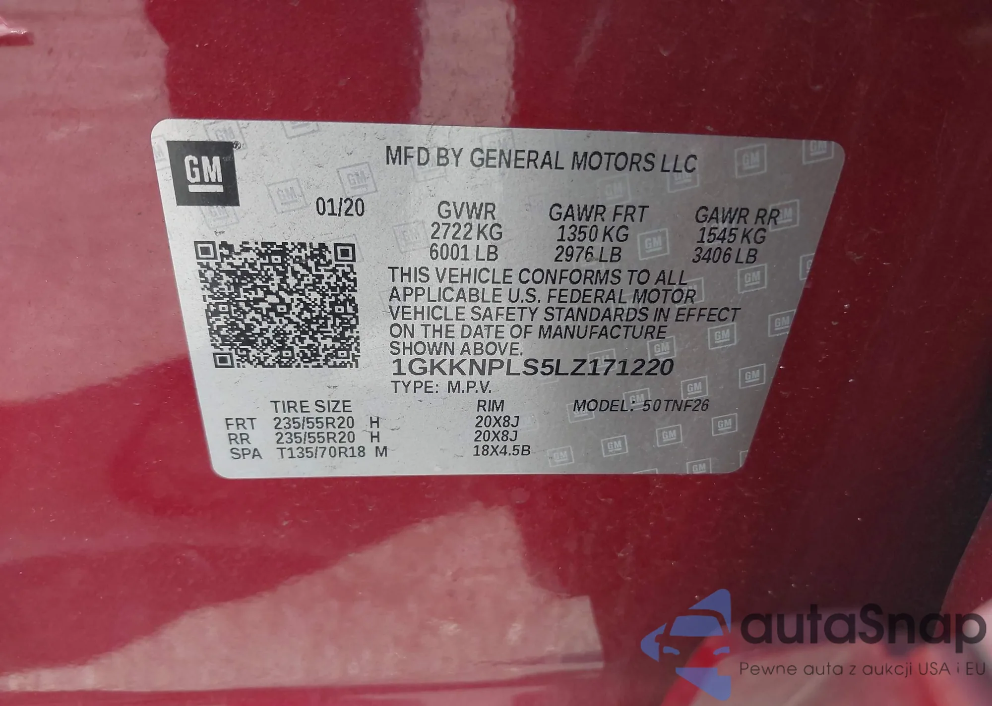 LOT: 43035278 VIN: 1GKKNPLS5LZ171220