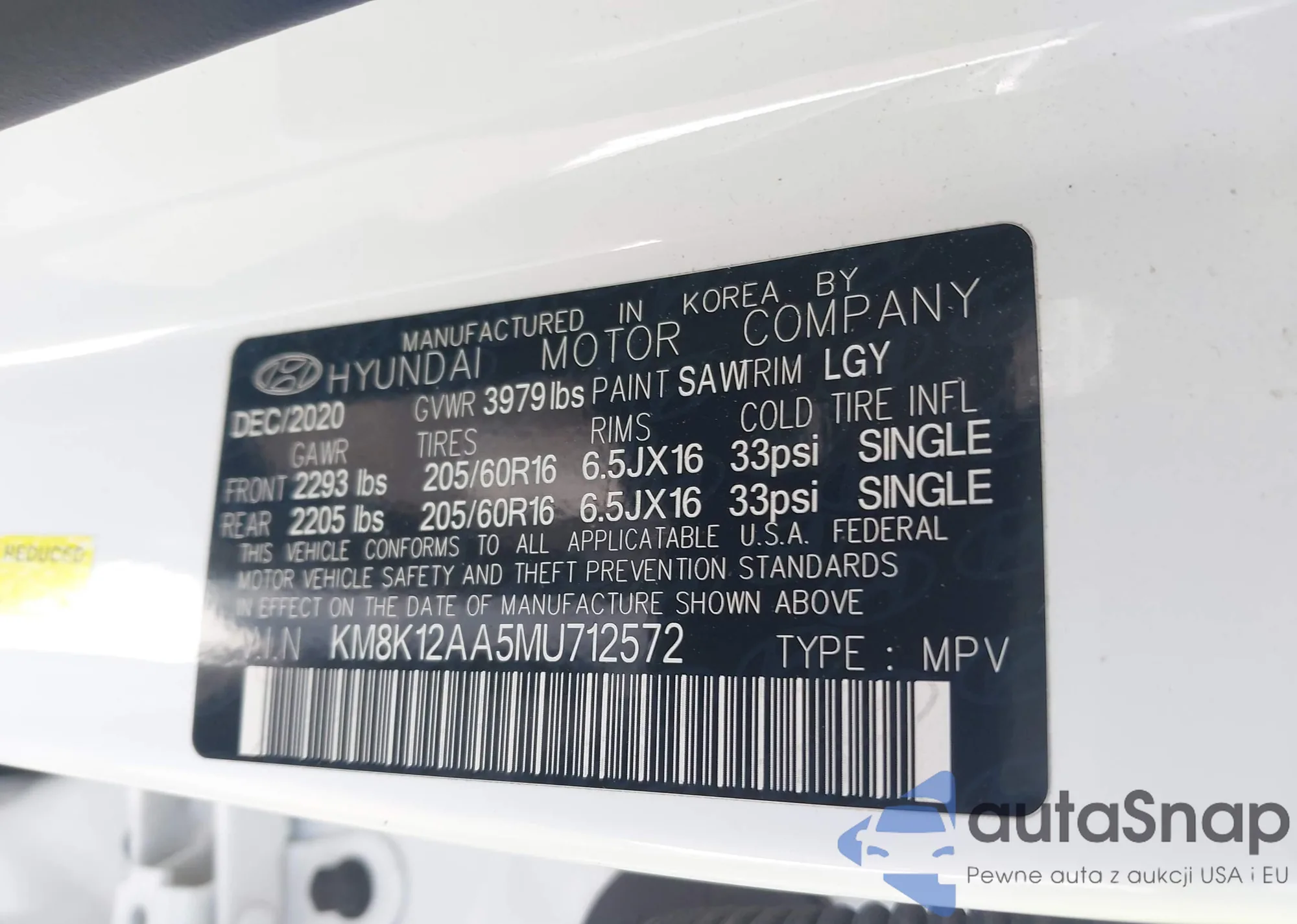 • VIN KM8K12AA5MU712572