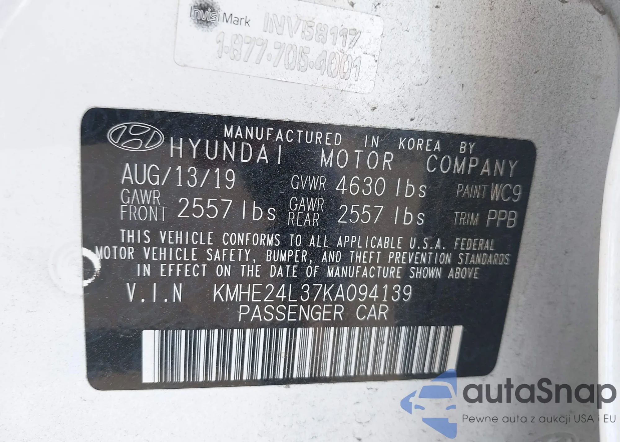 LOT: 42640855 VIN: KMHE24L37KA094139