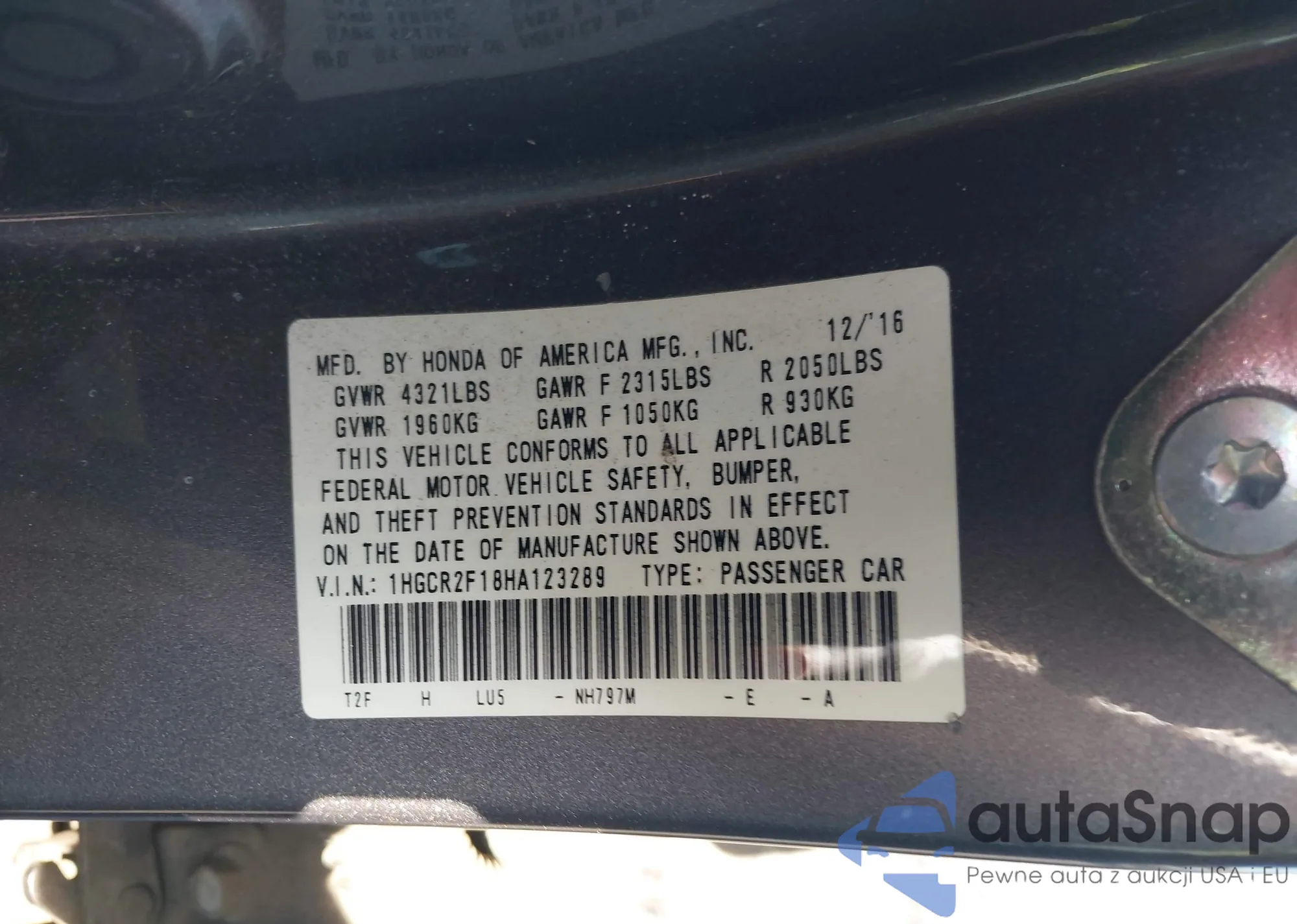 • VIN 1HGCR2F18HA123289