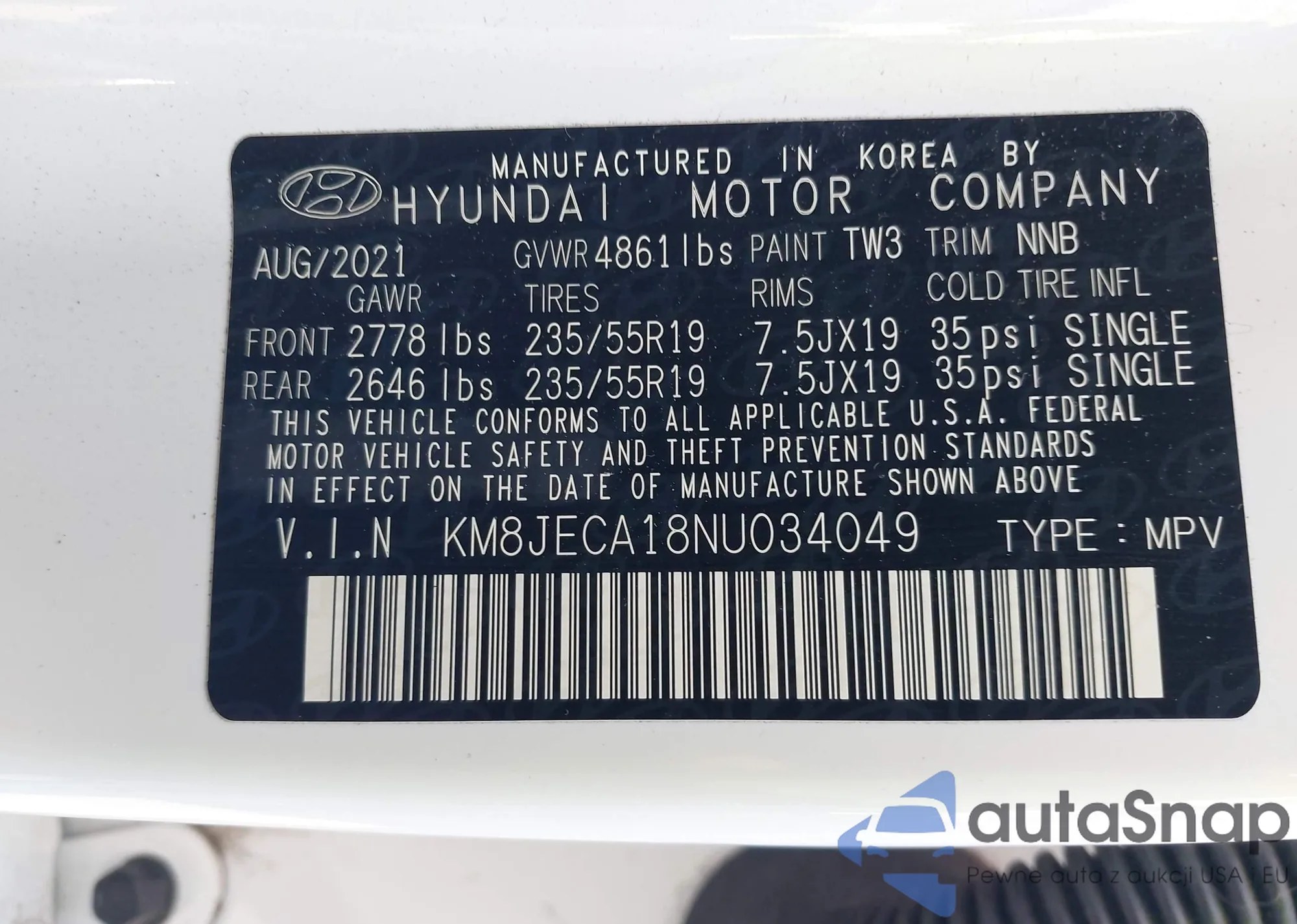 LOT: 42832083 VIN: KM8JECA18NU034049