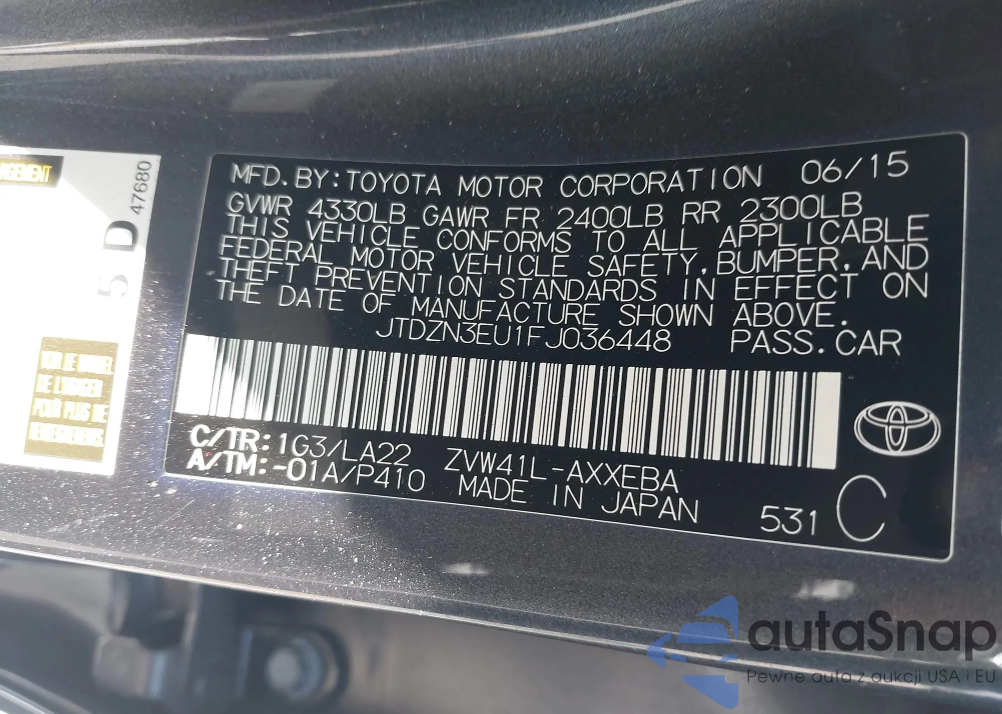 LOT: 42849014 VIN: JTDZN3EU1FJ036448