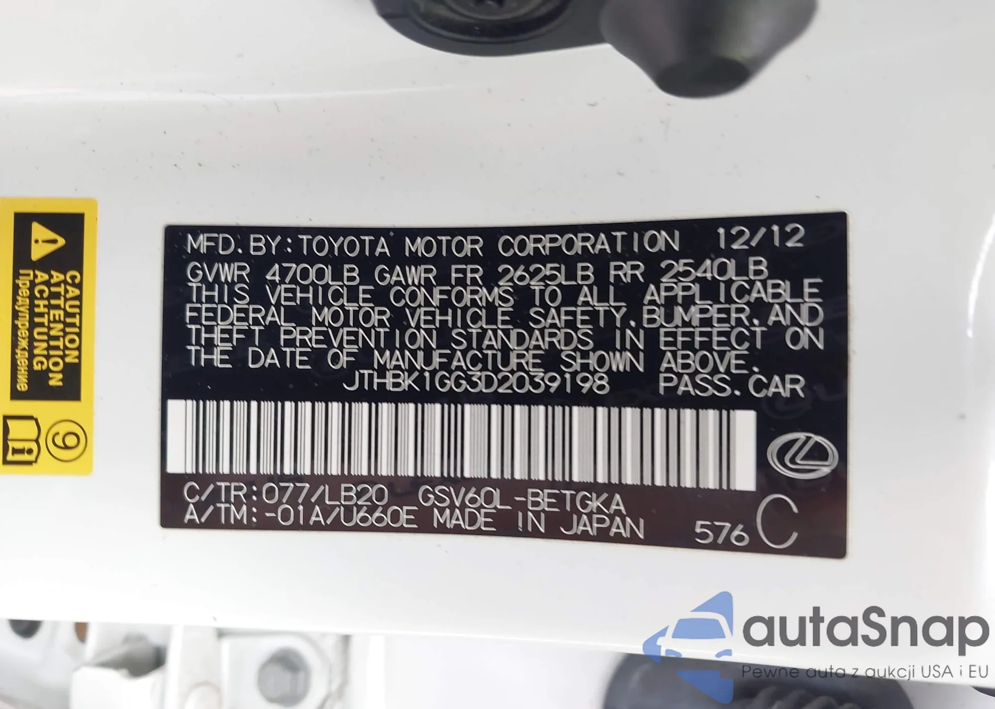 LOT: 42911344 VIN: JTHBK1GG3D2039198