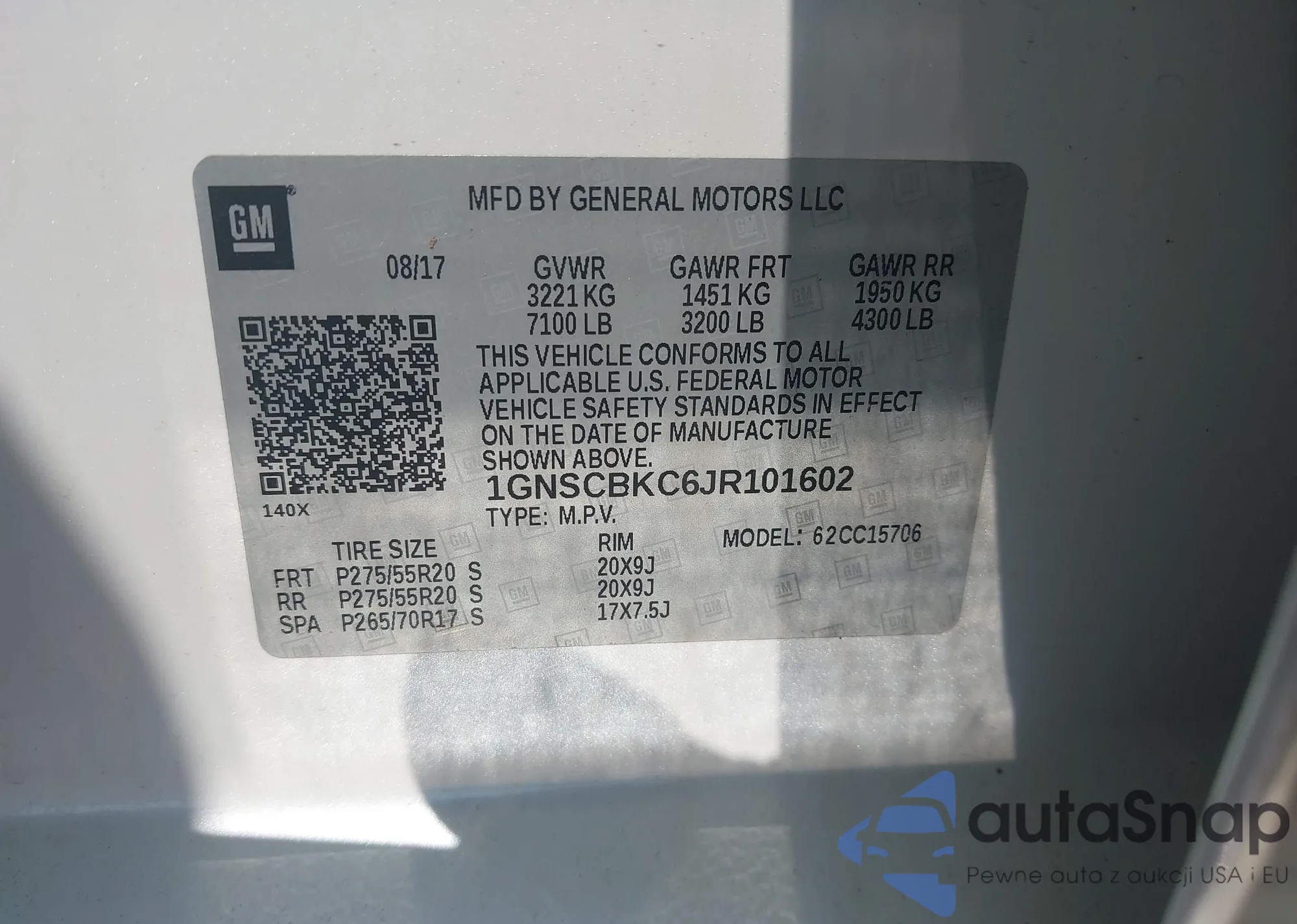 LOT: 42788606 VIN: 1GNSCBKC6JR101602