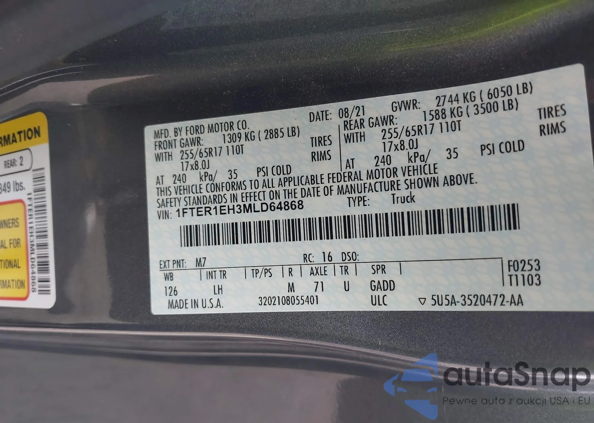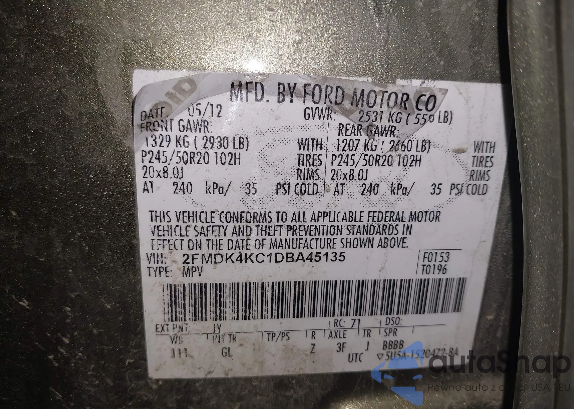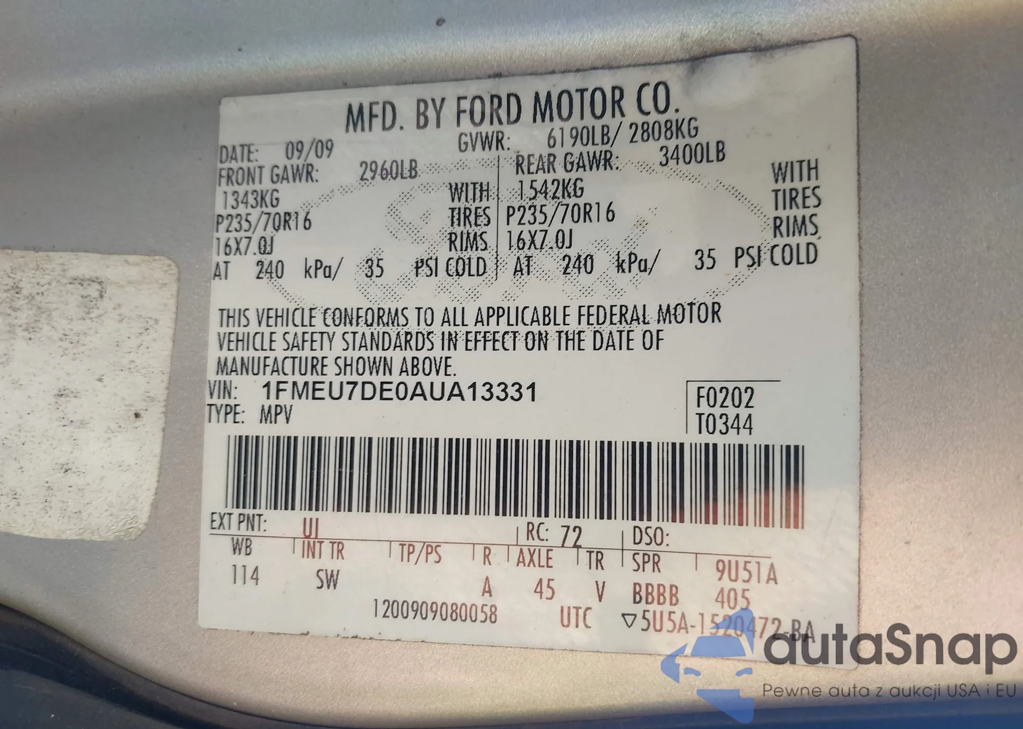 • VIN 1FMEU7DE0AUA13331