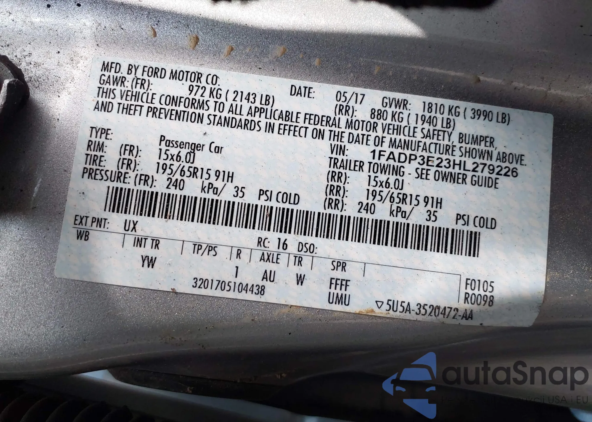 • VIN 1FADP3E23HL279226