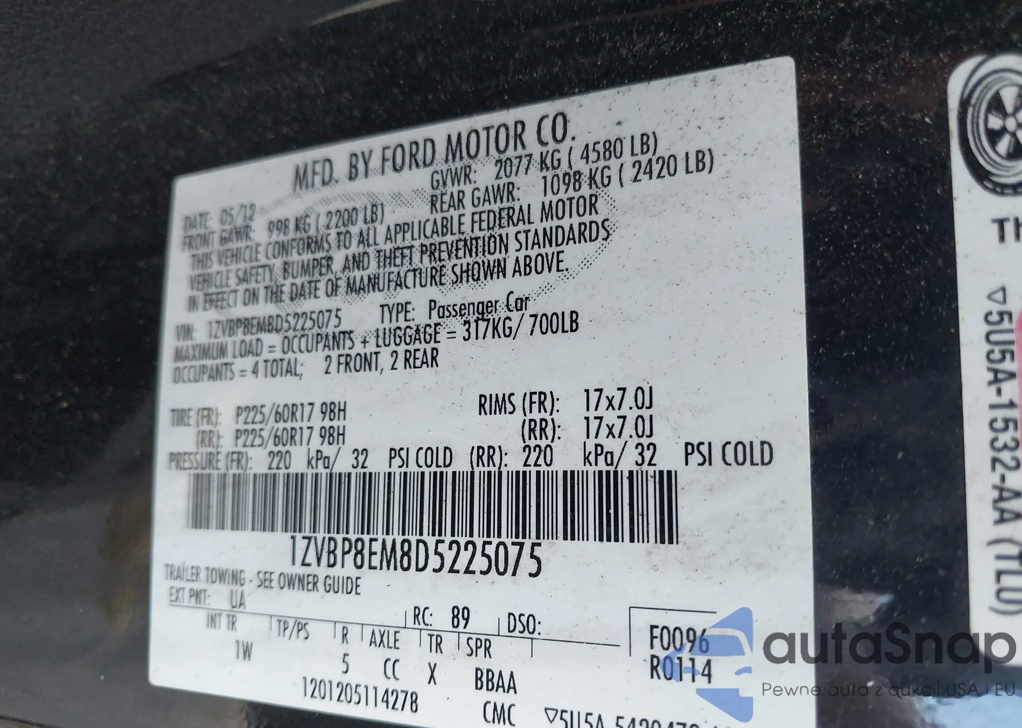• VIN 1ZVBP8EM8D5225075