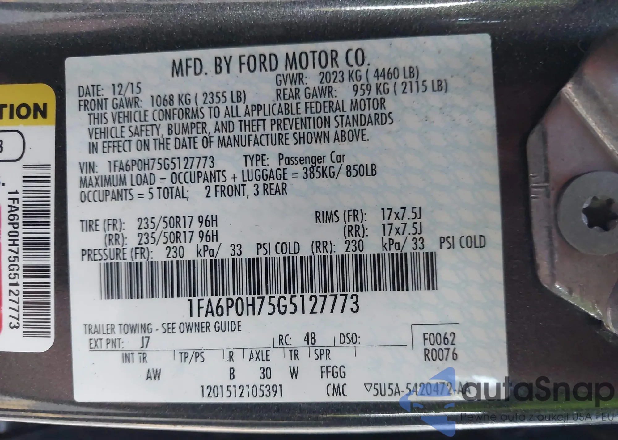 • VIN 1FA6P0H75G5127773