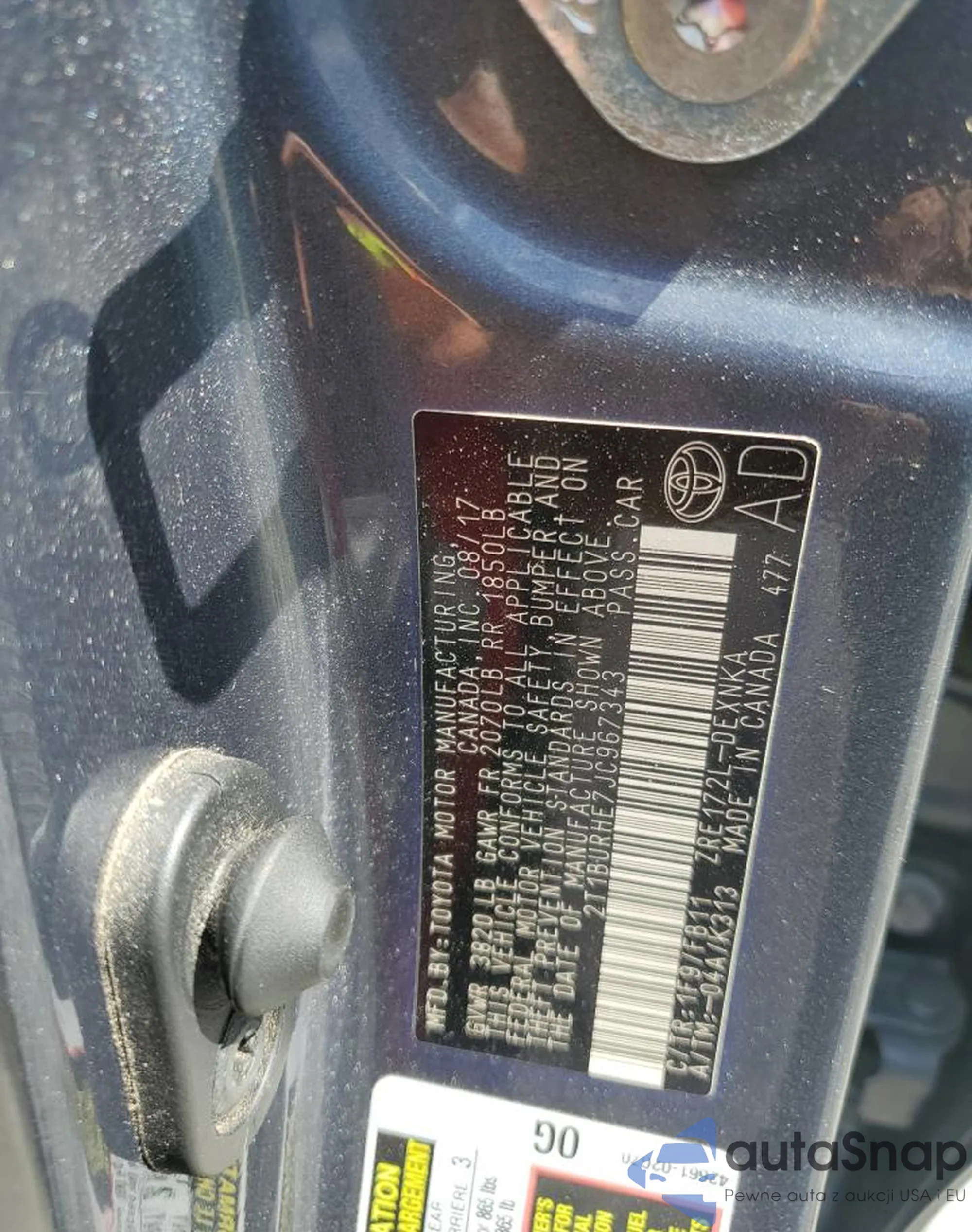 LOT: 70484005 VIN: 2T1BURHE7JC967343