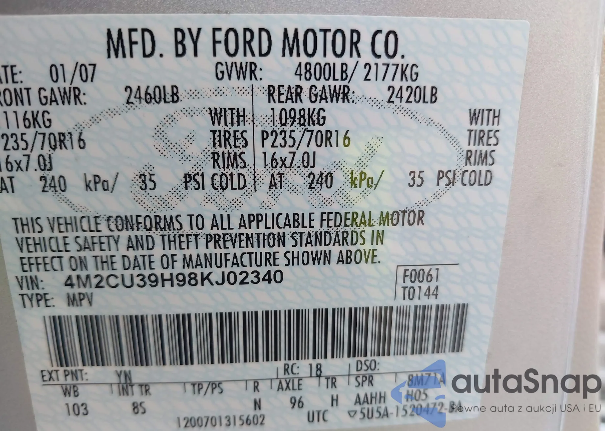 • VIN 1FMYU02Z05DA06492