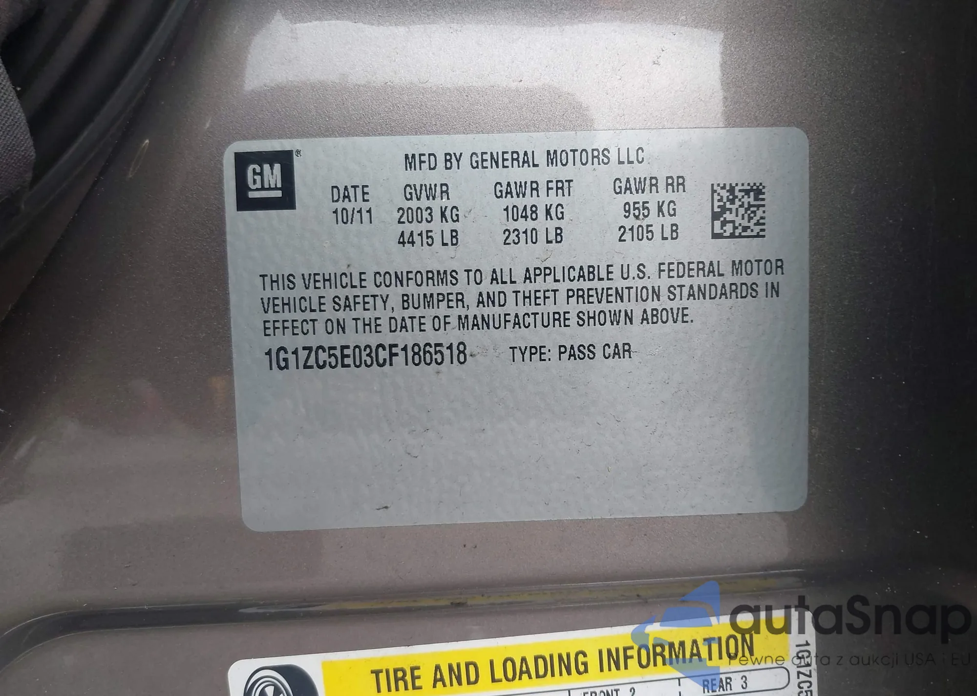 • VIN 1G1ZC5E03CF186518