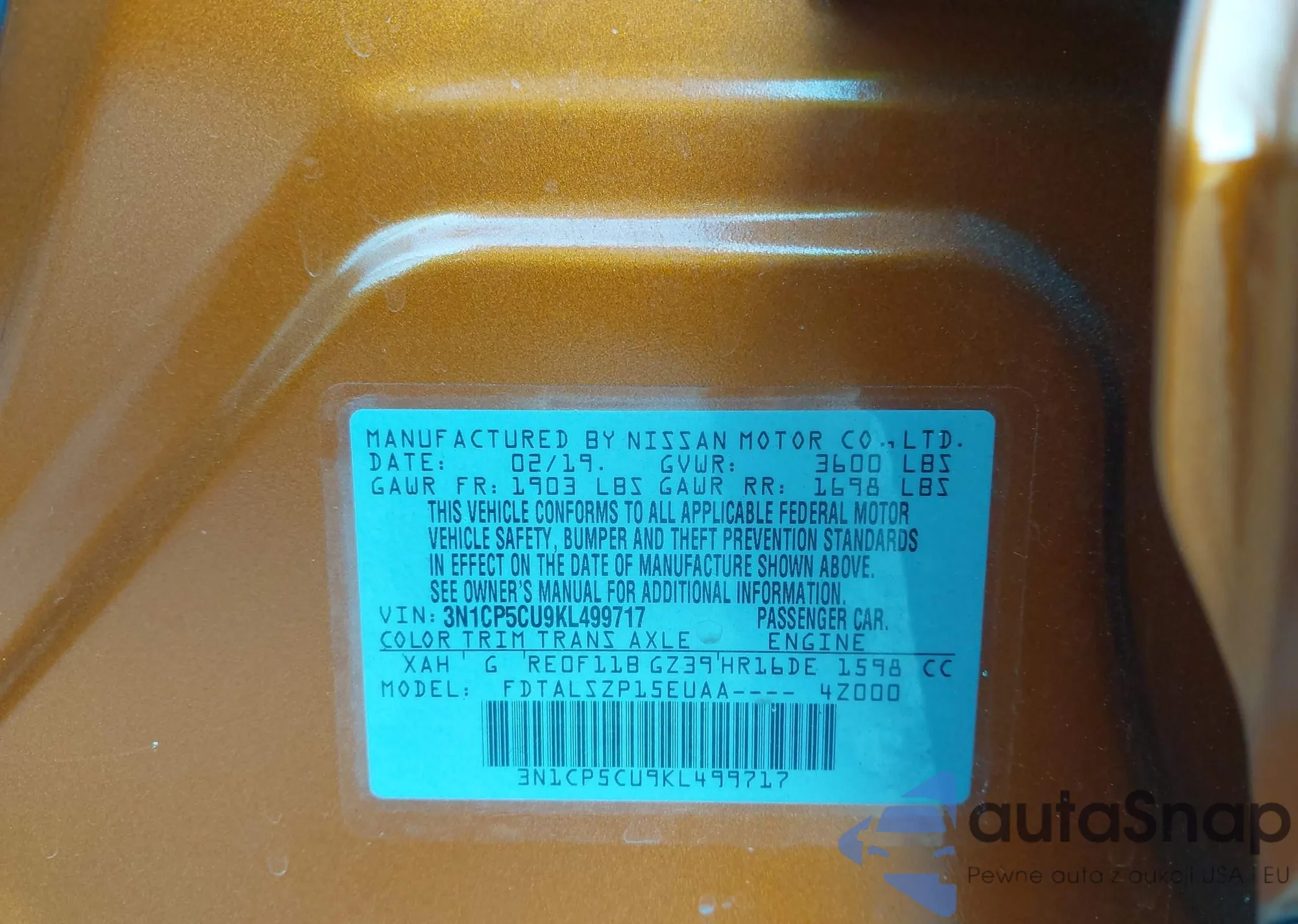 • VIN 5TFAZ5CN3MX104669