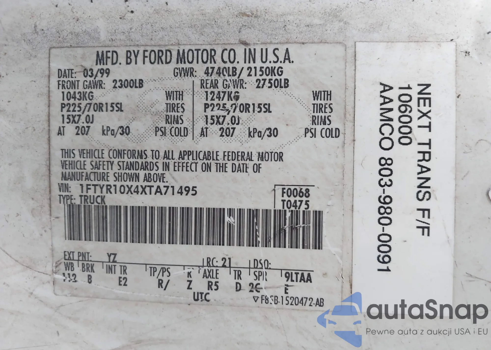 • VIN 1FTYR10X4XTA71495