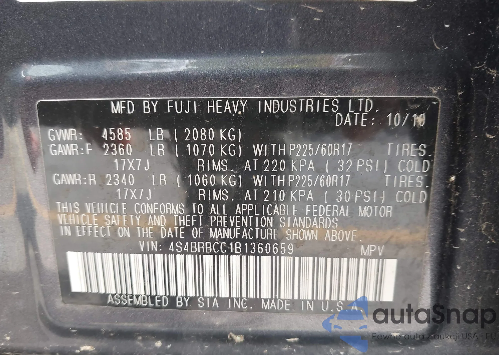 • VIN 4S4BRBCC1B1360659
