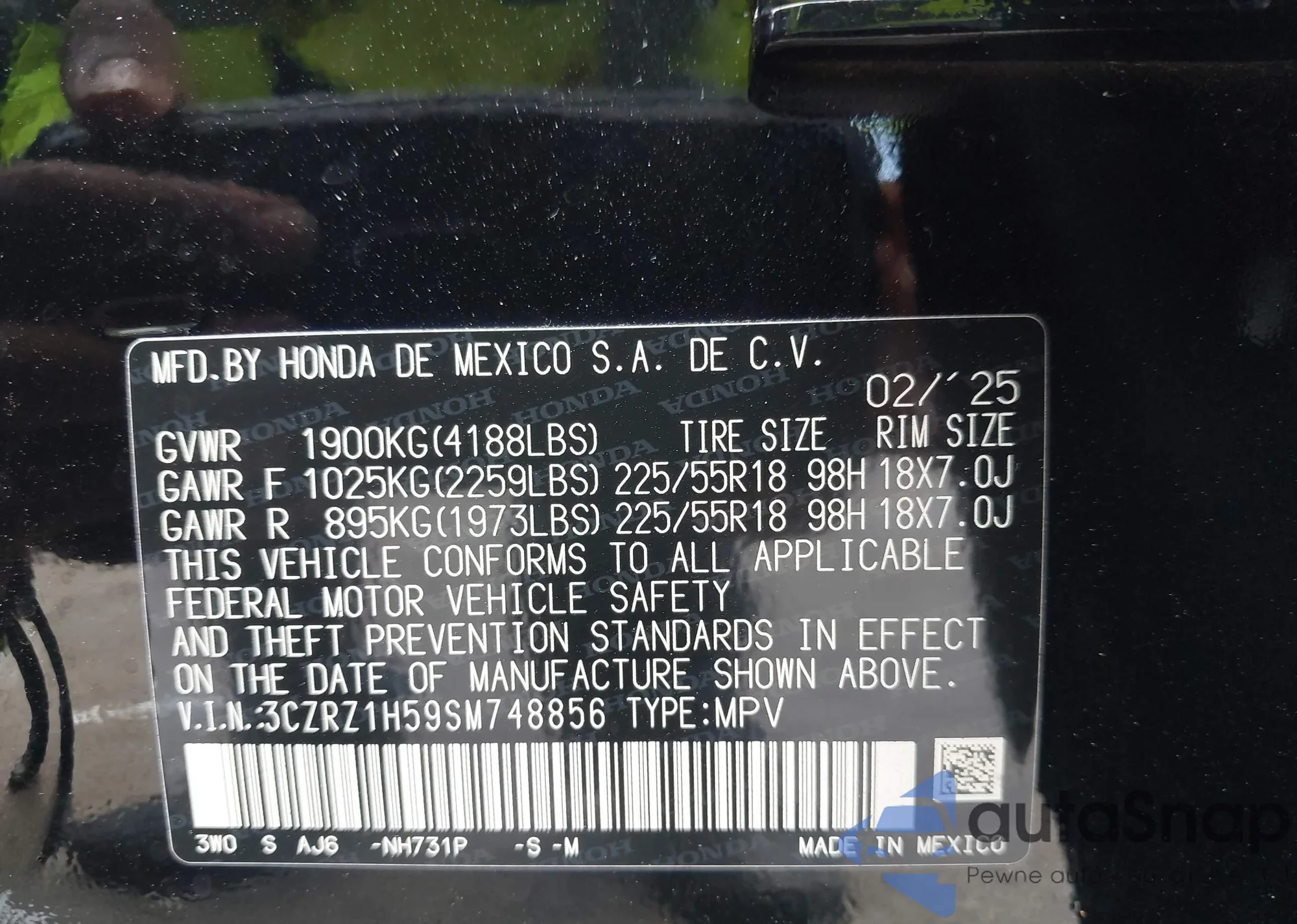 • VIN JHMCR6F56HC021033