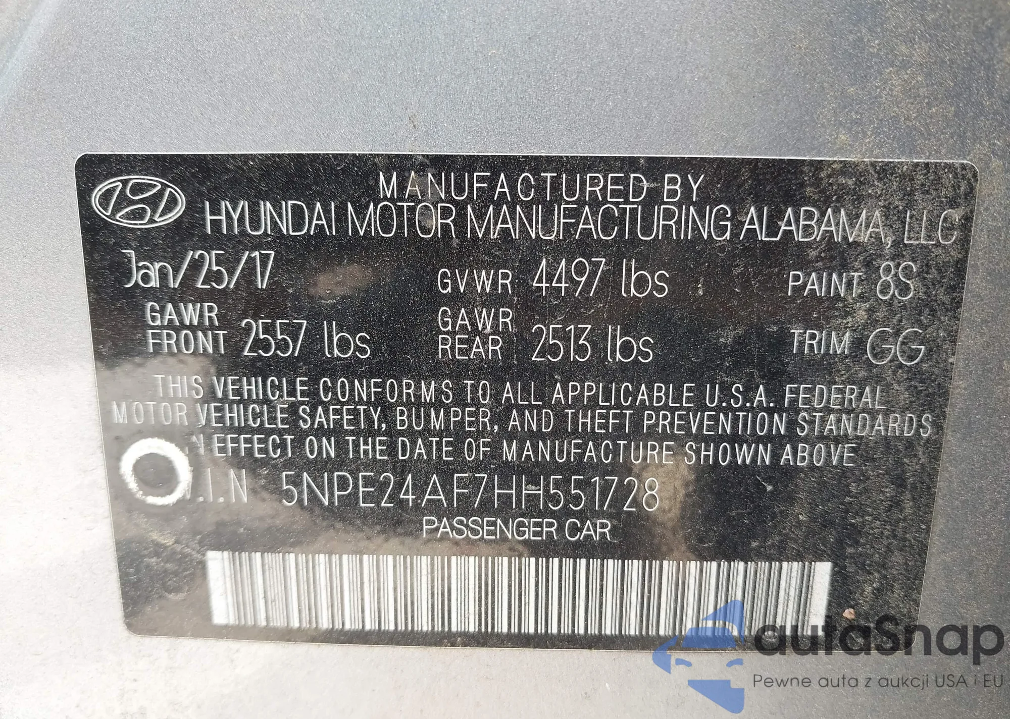 • VIN 5NPE24AF7HH551728