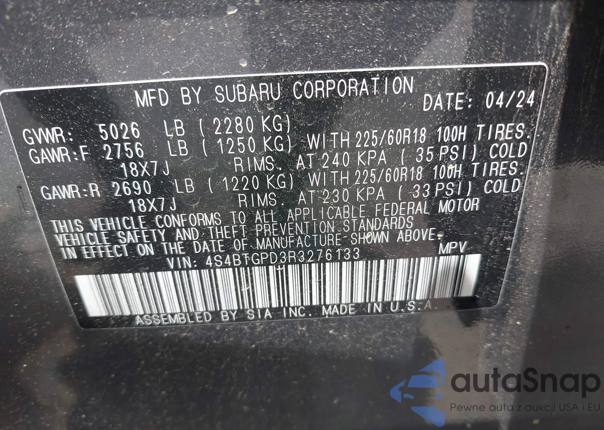 • VIN 4S4BTGPD3R3276133