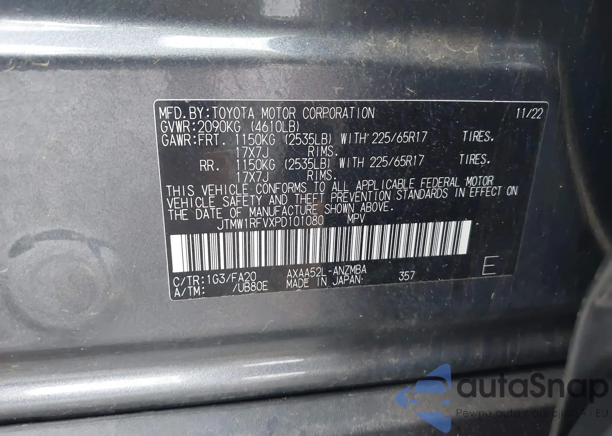 LOT: 42815031 VIN: JTMW1RFVXPD101080