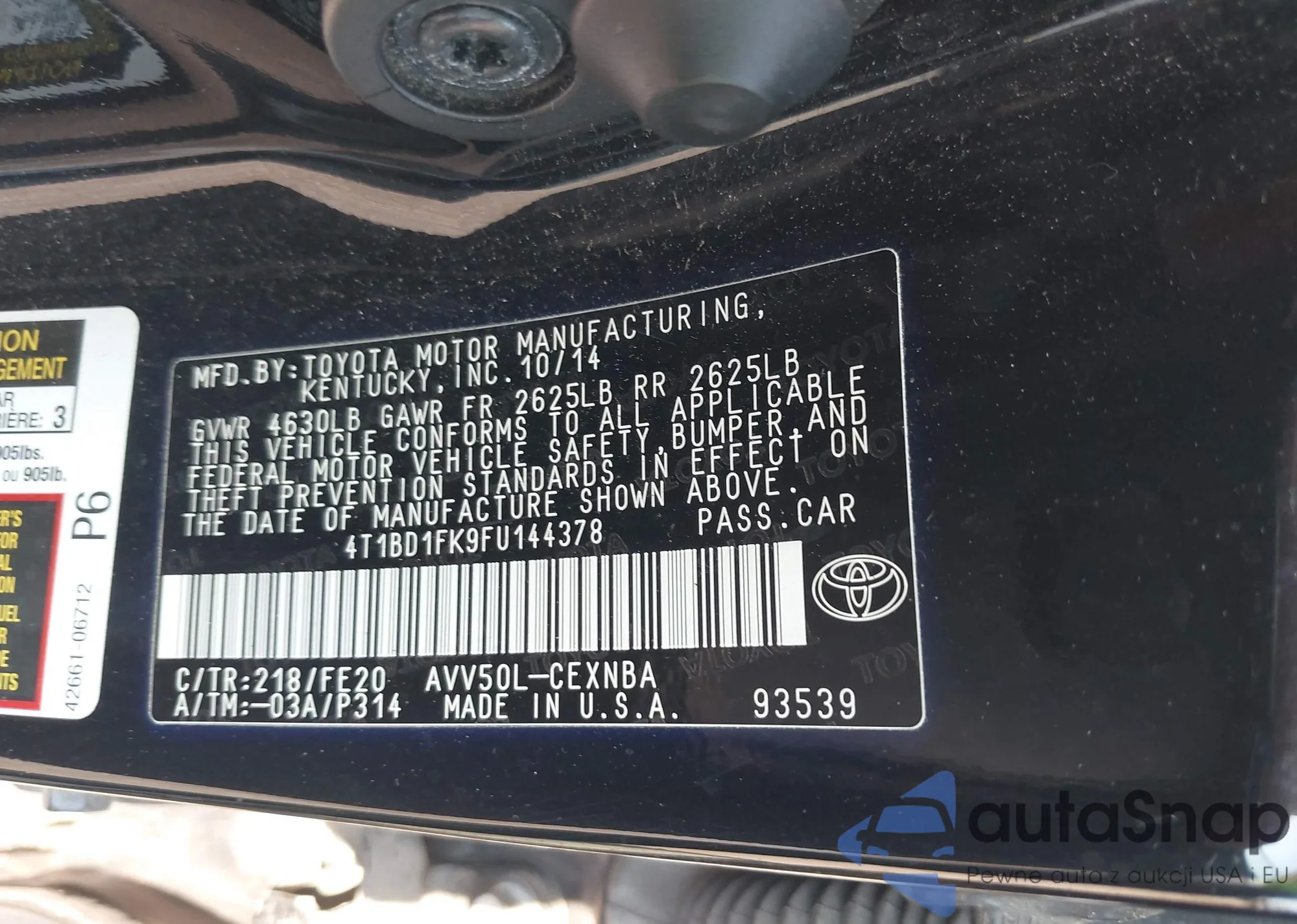 • VIN 4T1BD1FK9FU144378
