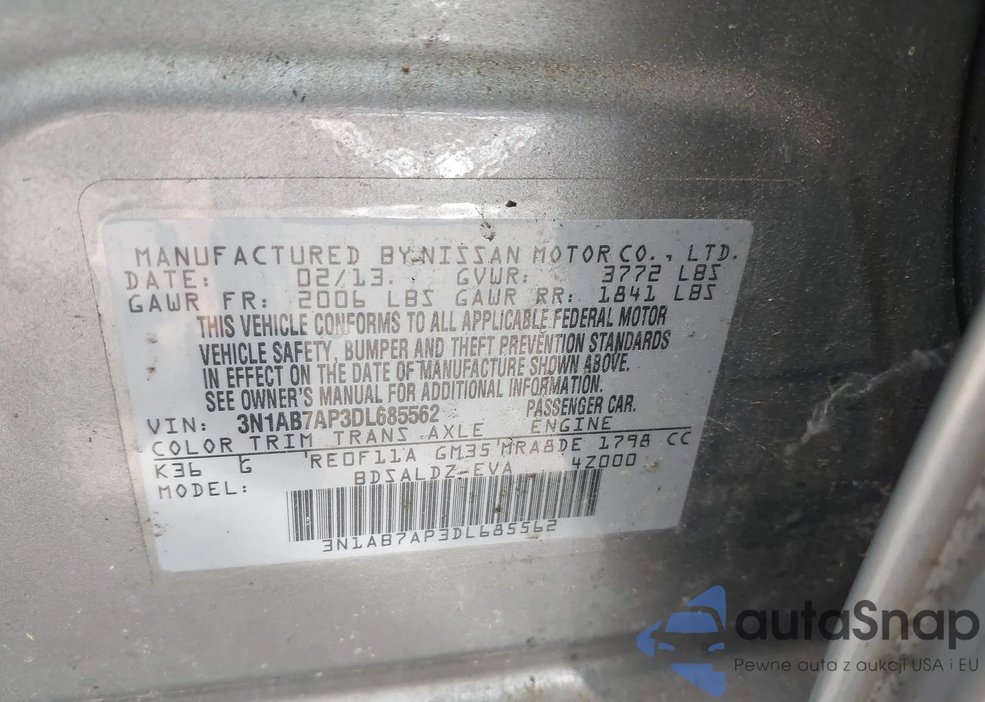 • VIN 3N1AB7AP3DL685562