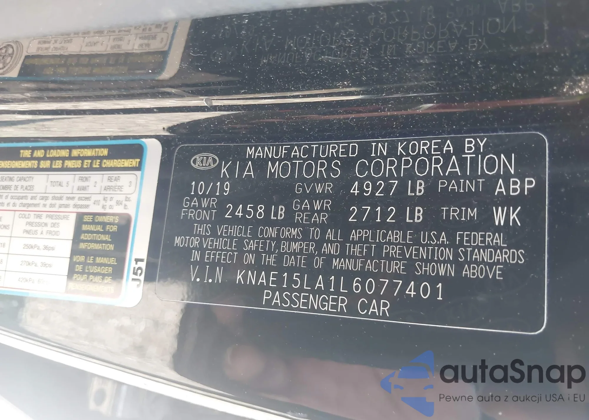 LOT: 42494843 VIN: KNAE15LA1L6077401
