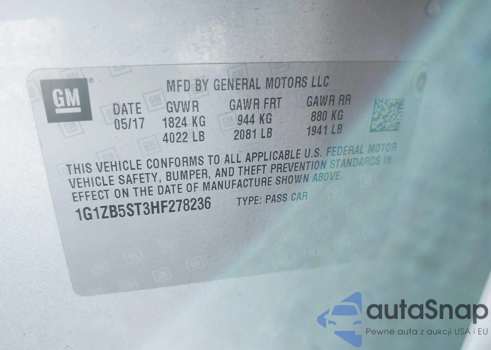 • VIN 1G1ZB5ST3HF278236