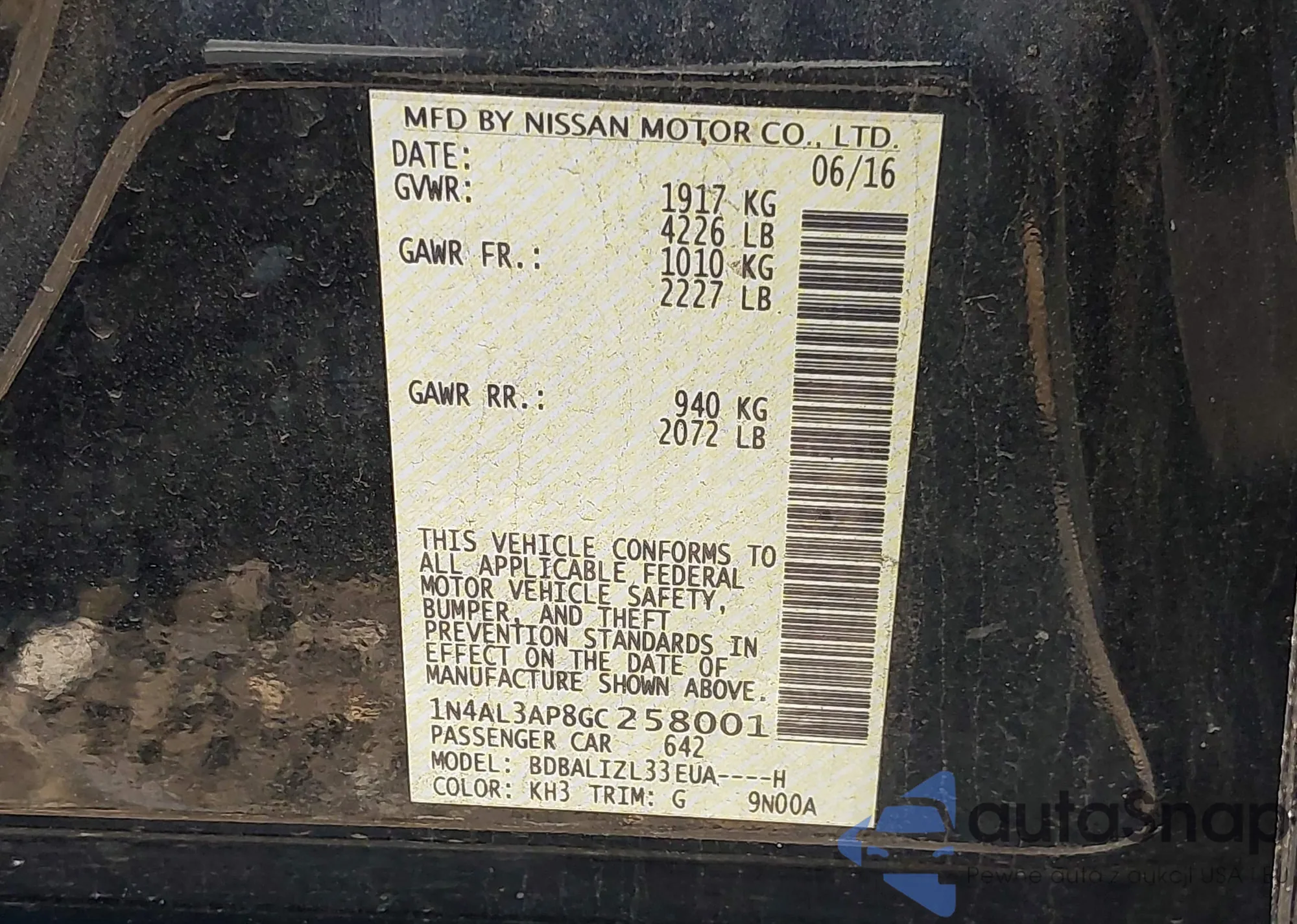 LOT: 42833279 VIN: 1N4AL3AP8GC258001