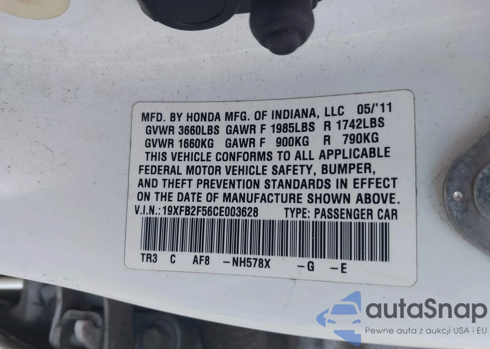 LOT: 42826455 VIN: 5FNRL5H6XBB027750