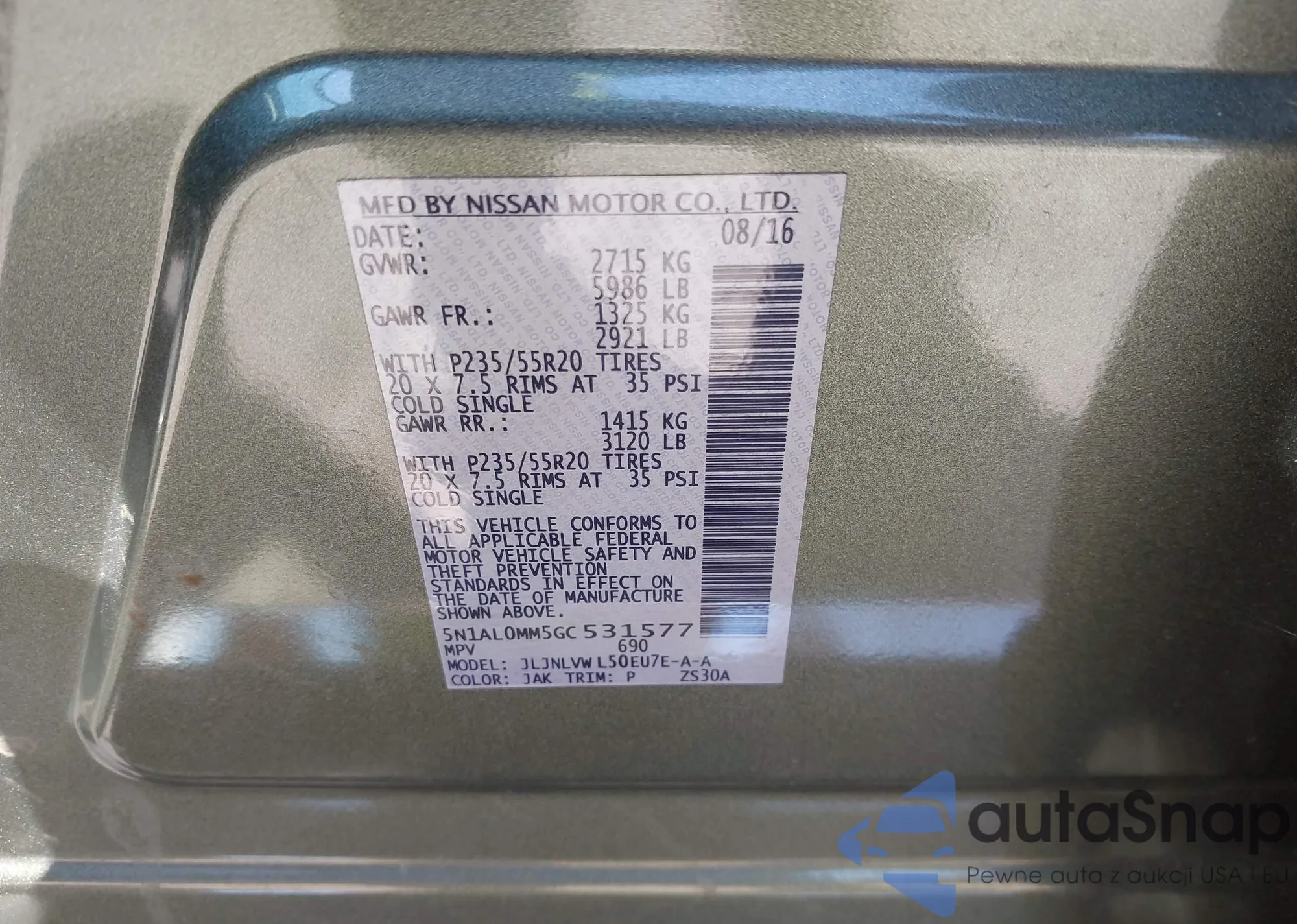 • VIN JN8AY2NDXJ9058316