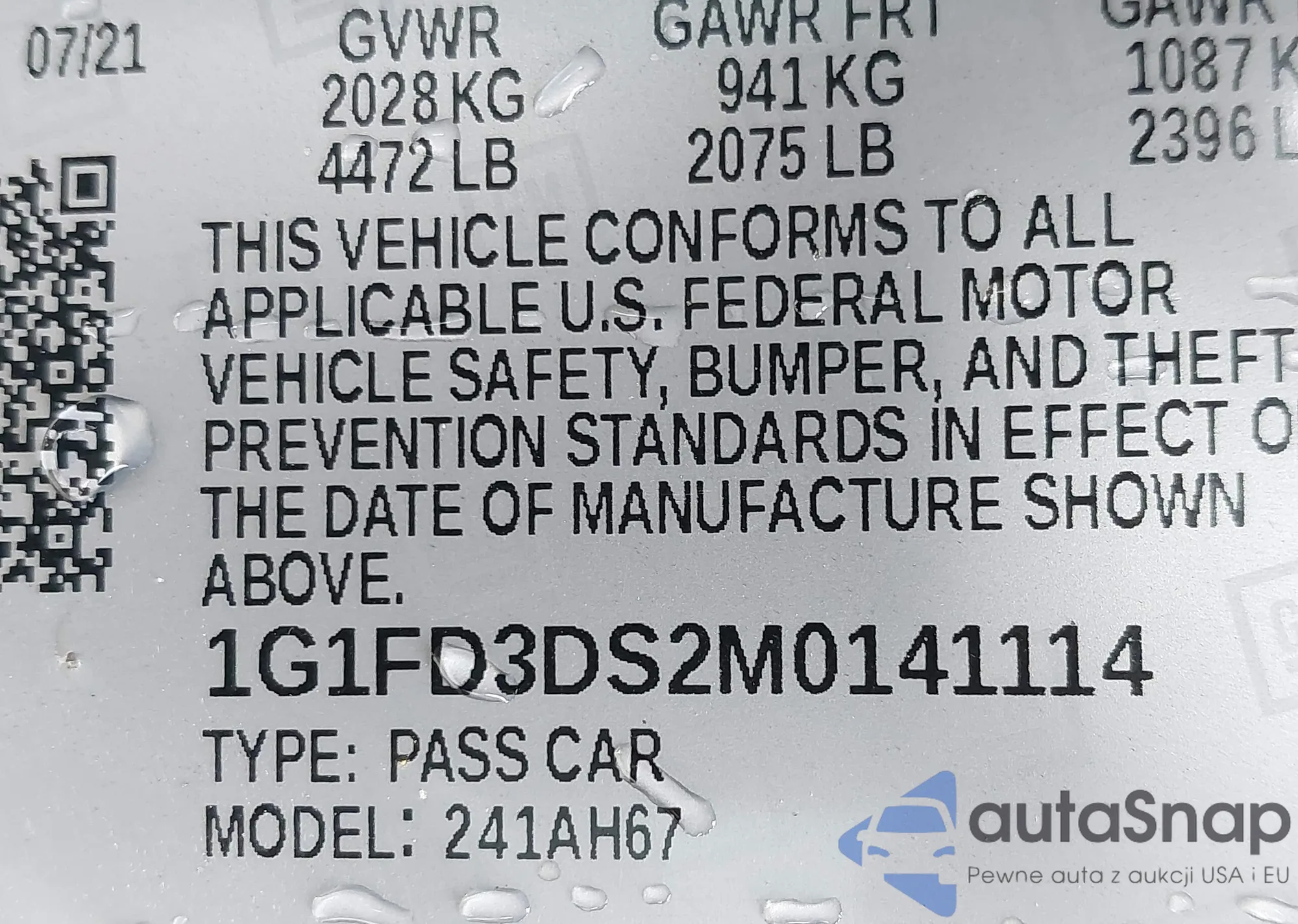 LOT: 42759501 VIN: 1G1FD3DS2M0141114
