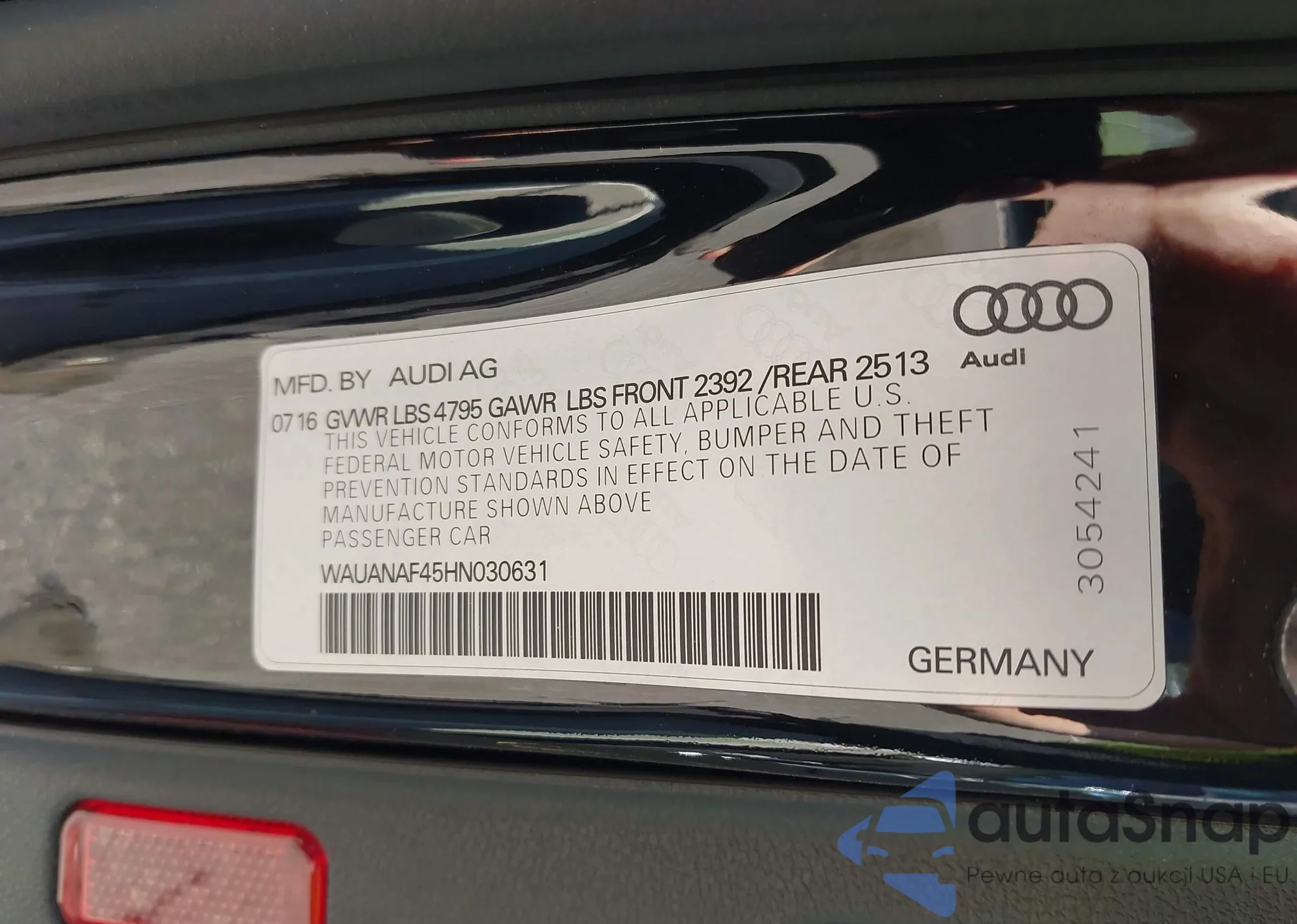 LOT: 42891253 VIN: 1G1AT58H497163072