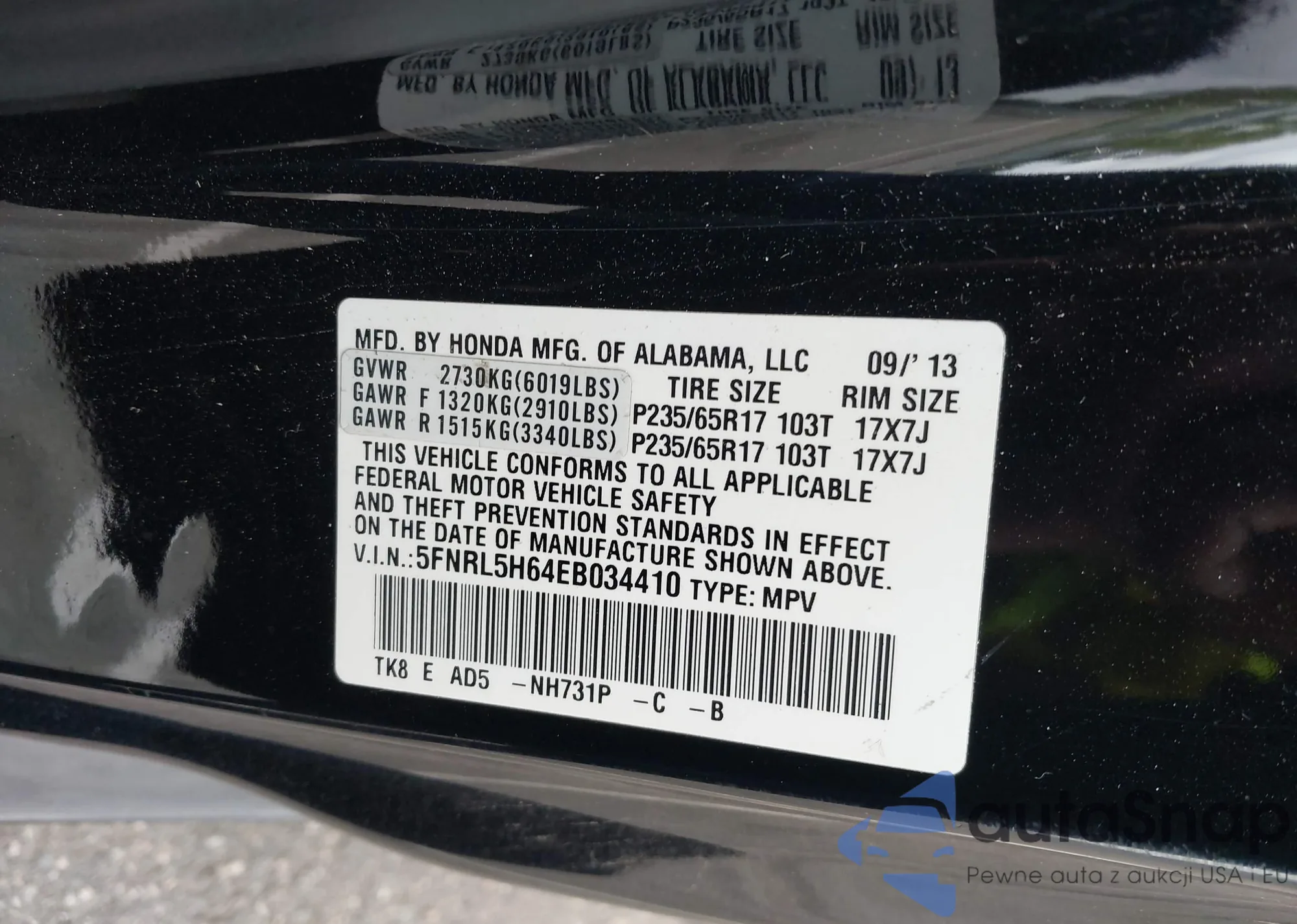 • VIN 5FNRL5H64EB034410