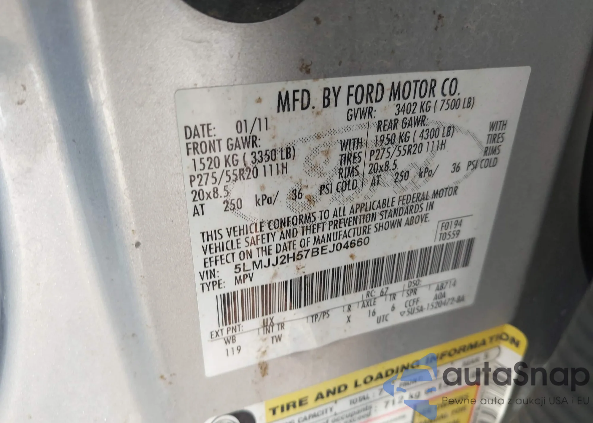 LOT: 42926359 VIN: 5LMJJ2H57BEJ04660