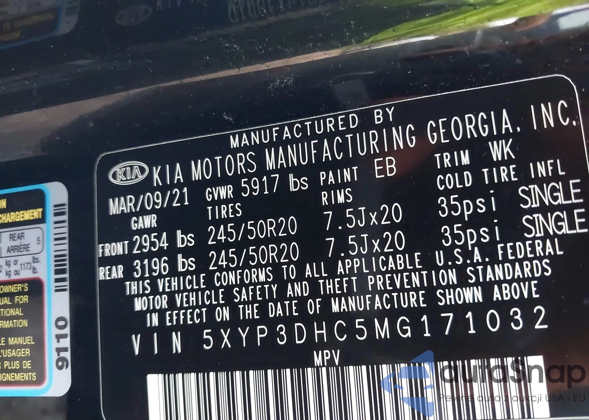 • VIN 5XYP3DHC5MG171032