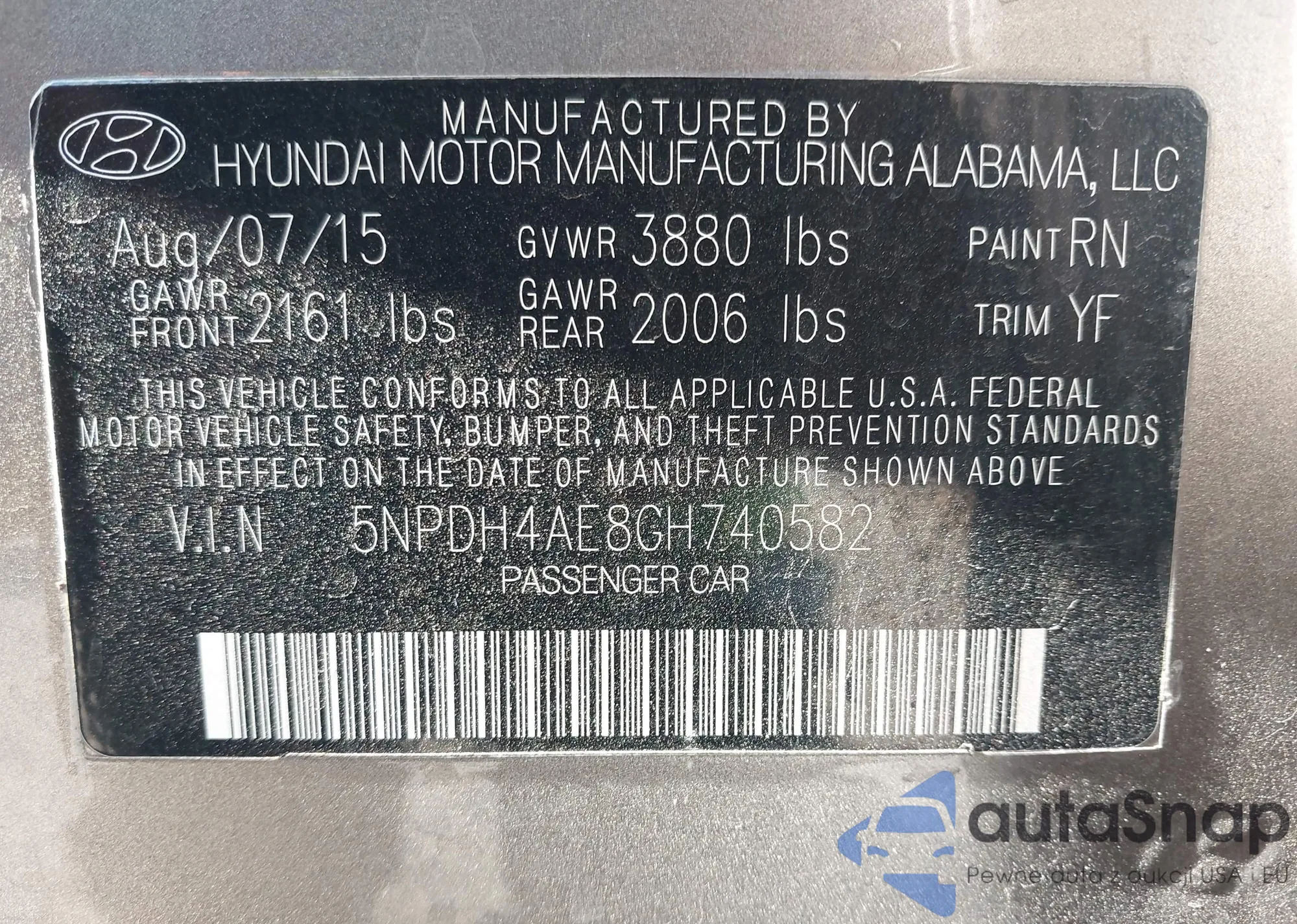 • VIN 5NPEC4AC2CH358107