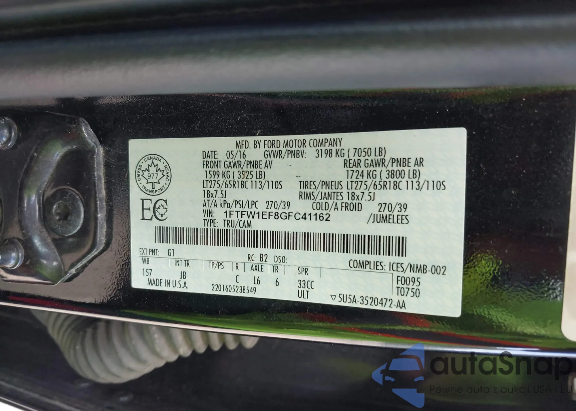 • VIN 1FTFW1EF8GFC41162