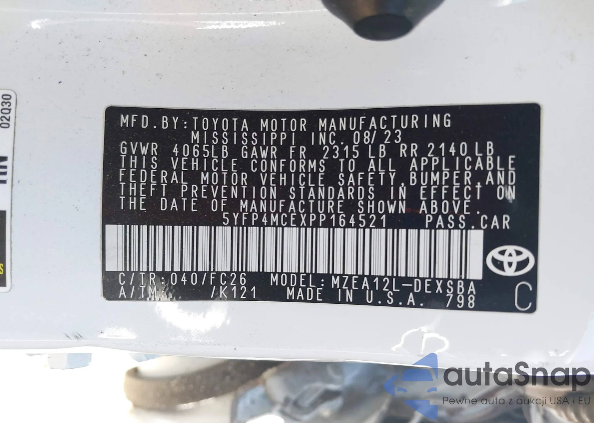 LOT: 42824711 VIN: 5YFP4MCEXPP164521