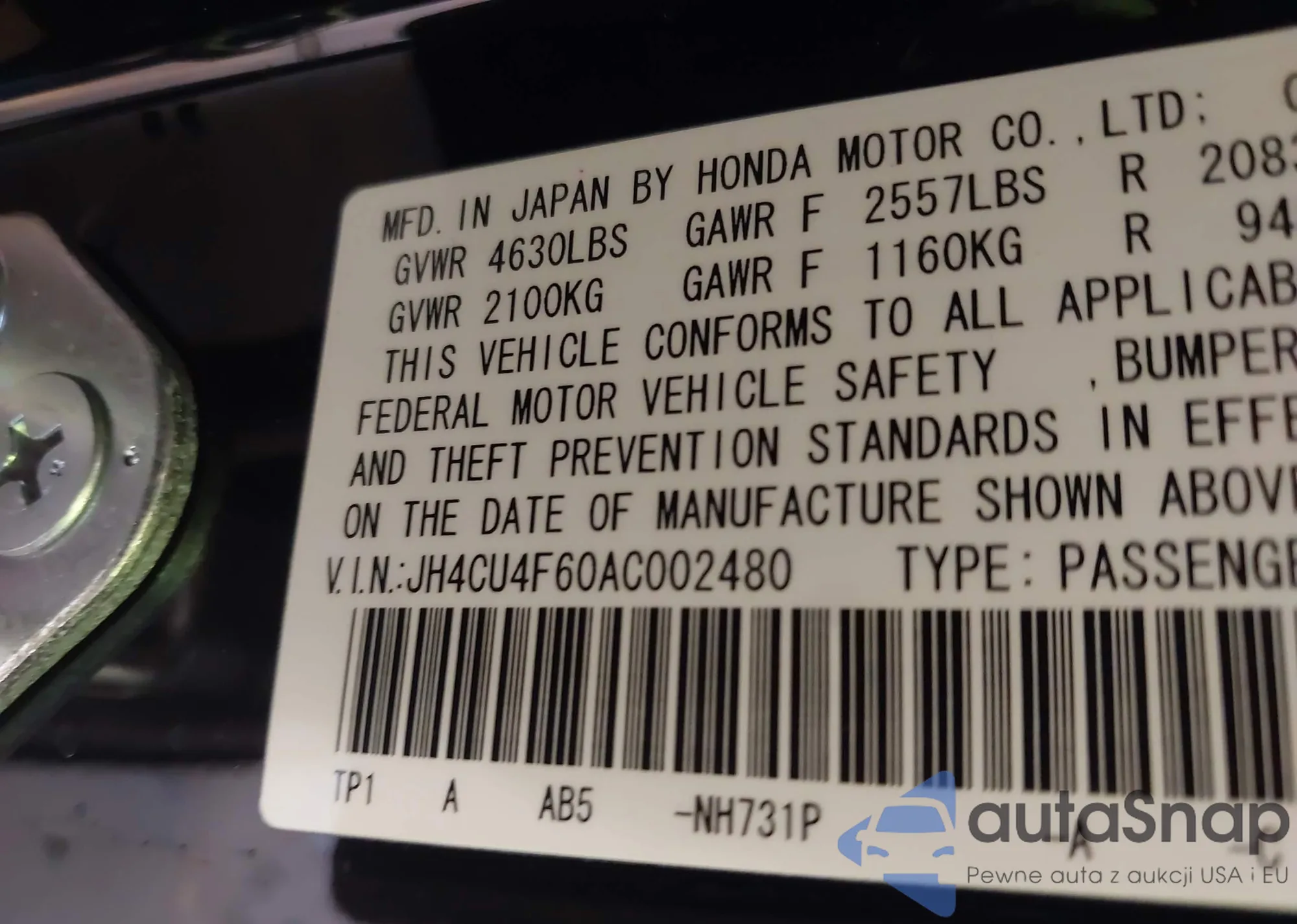 • VIN JH4CU4F60AC002480