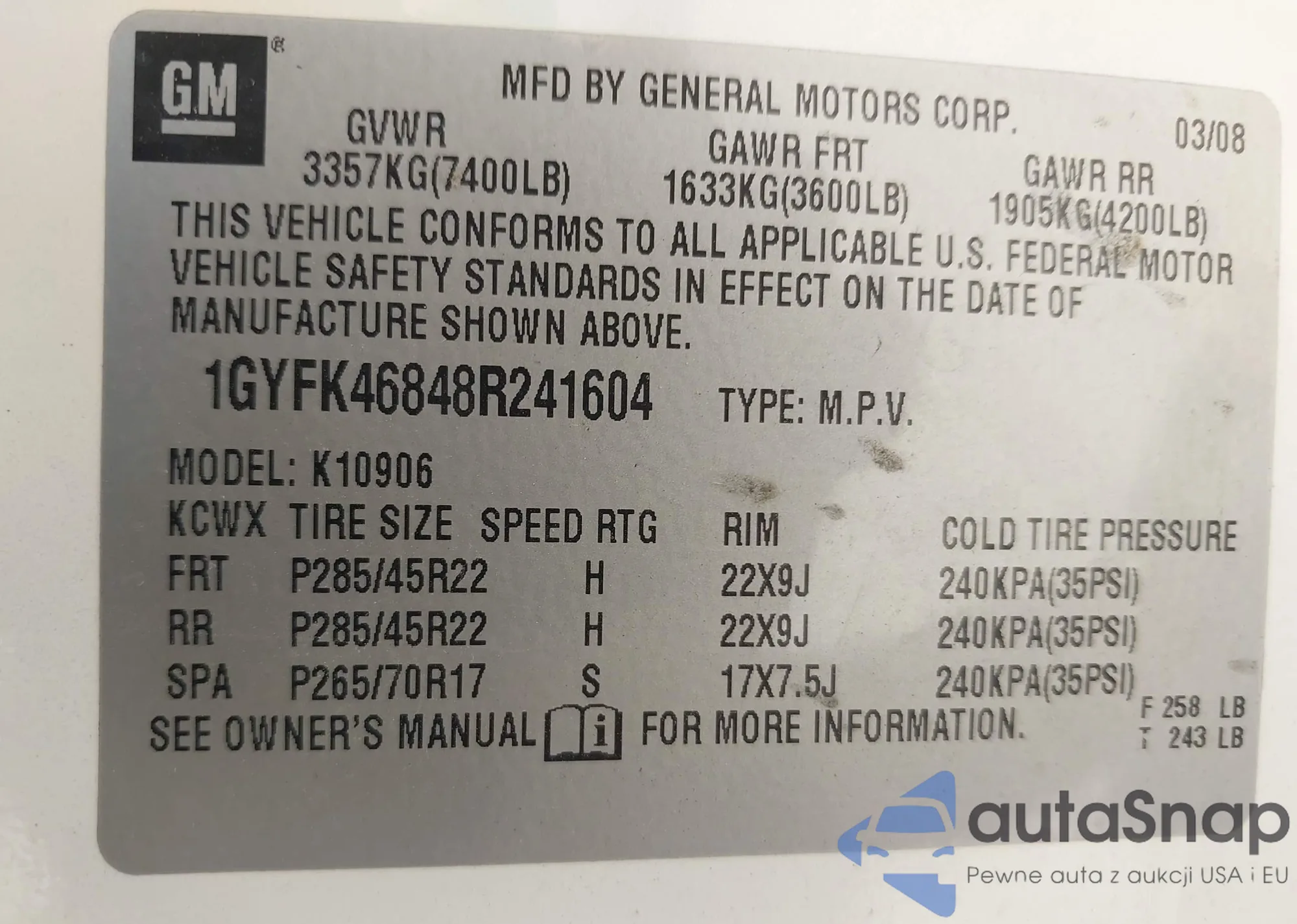 LOT: 42901625 VIN: 1GNDT13S022486819